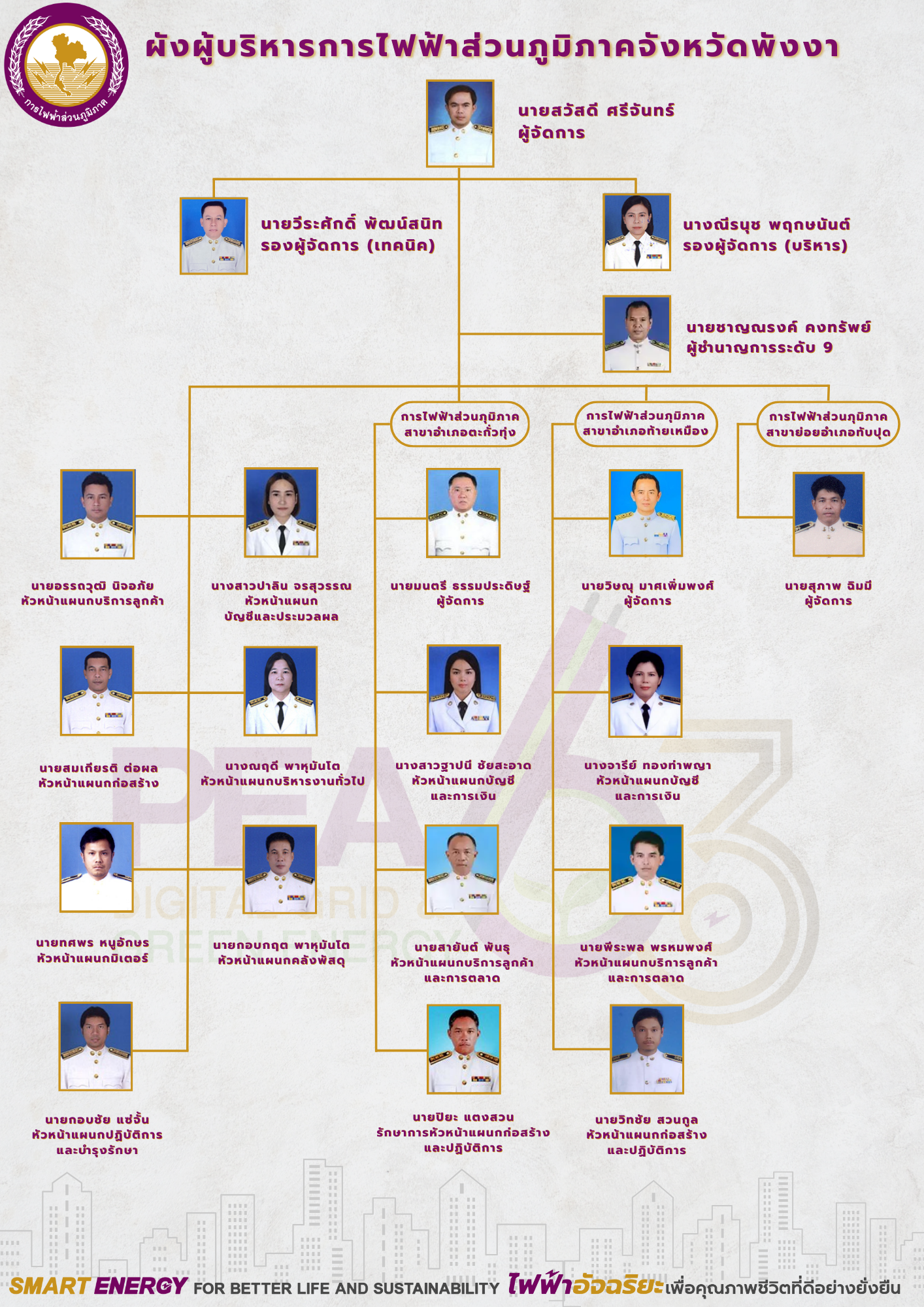 โครงสร้างผู้บริหาร การไฟฟ้าส่วนภูมิภาคจังหวัดพังงา