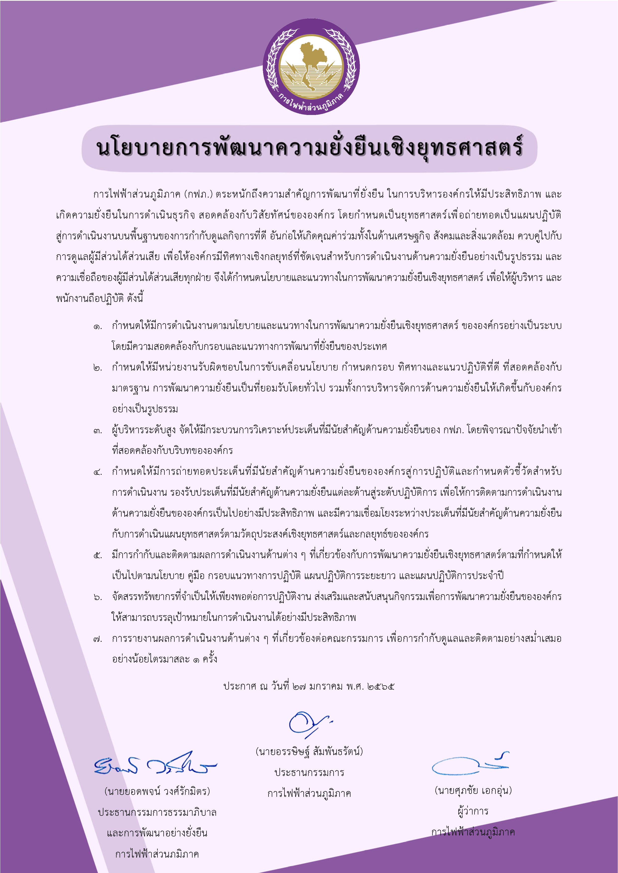 มติคณะกรรมการ กฟภ. ครั้งที่ 3/2565