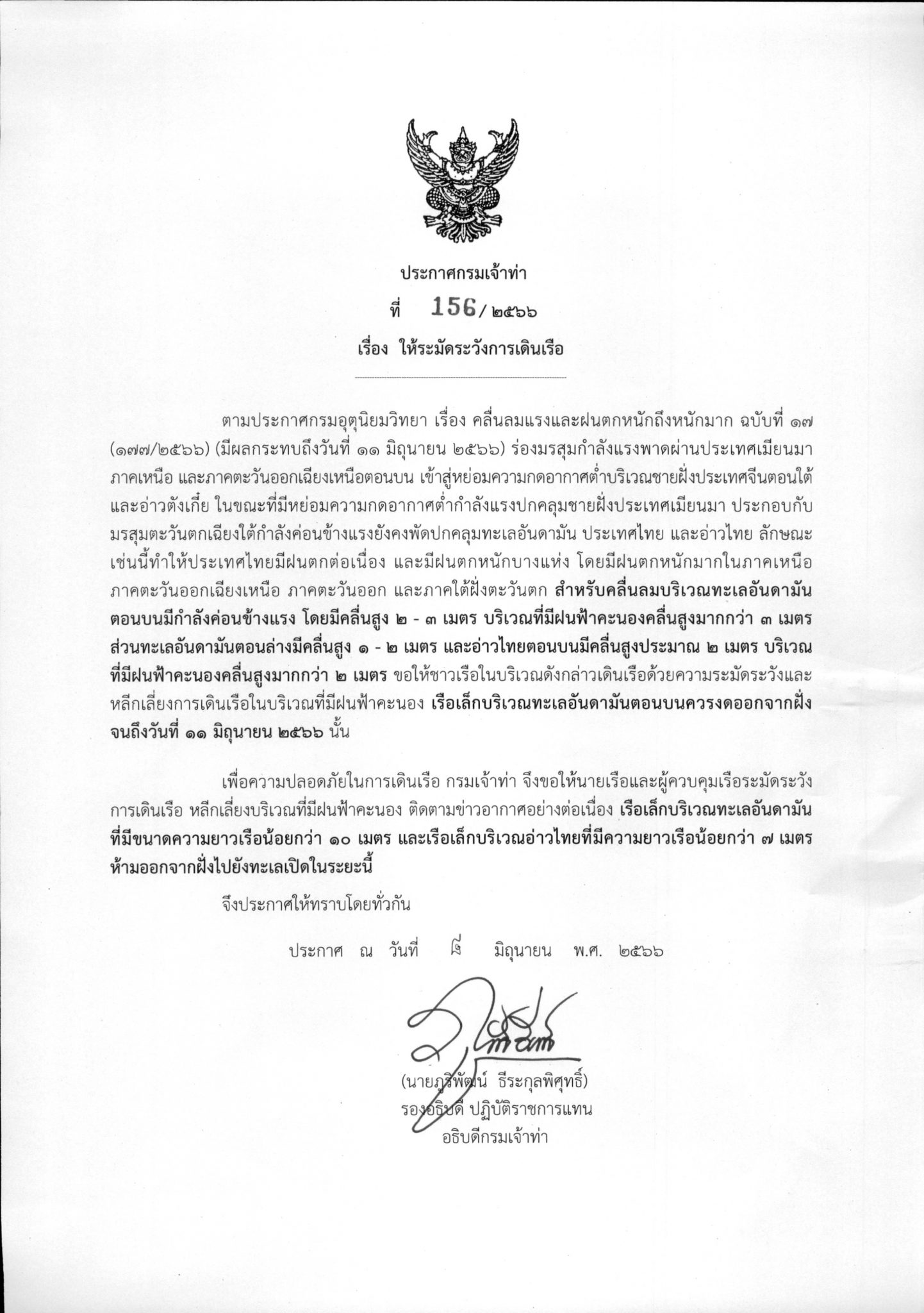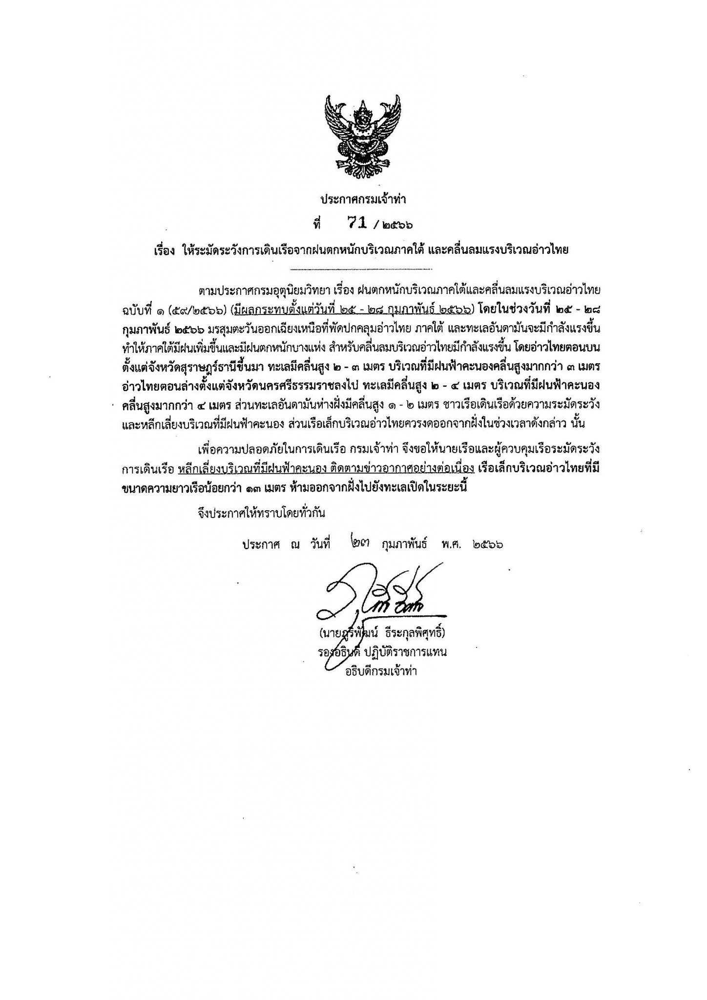 ประกาศกรมเจ้าท่า ที่ 113/2565 เรื่อง ให้ระมัดระวังการเดินเรือ ที่มา : https://md.go.th/