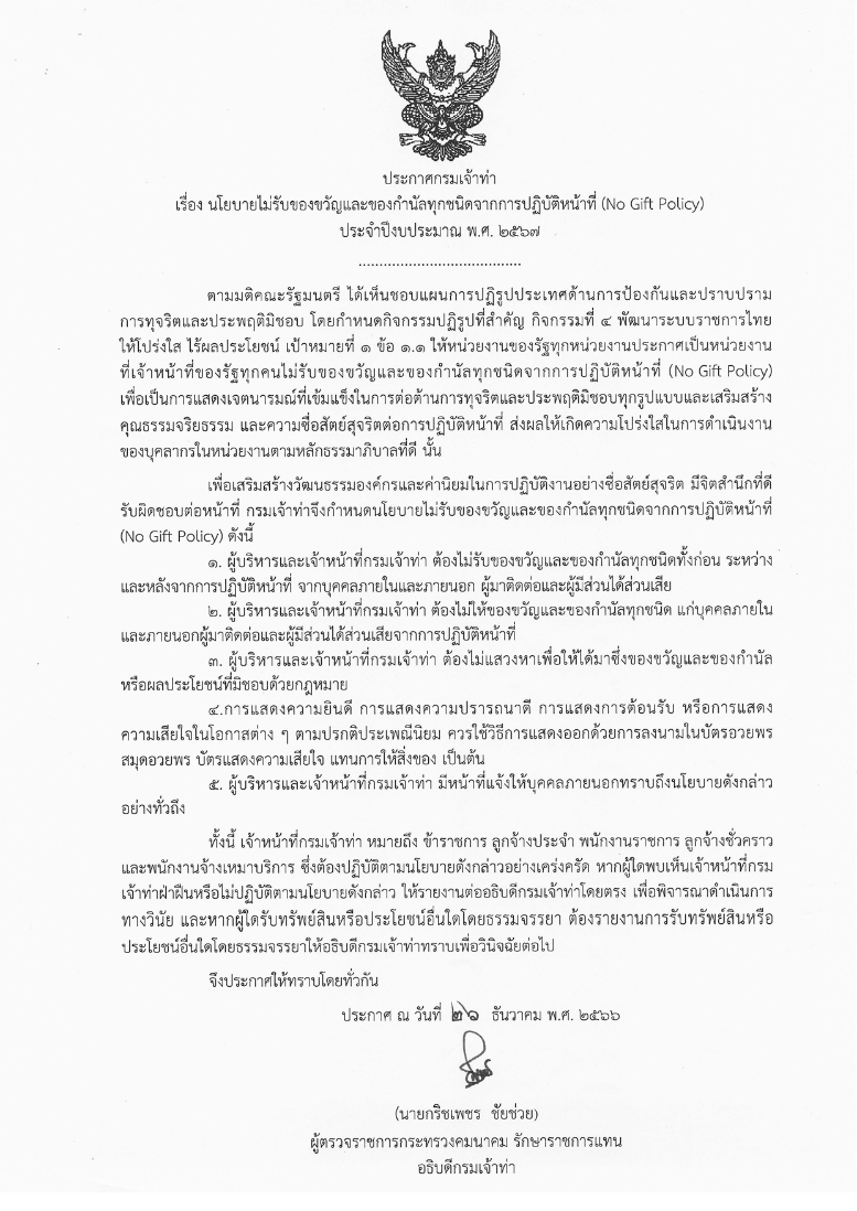 ประกาศกรมเจ้าท่า ที่ 270/2564 เรื่องนโยบายการบริหารทรัพยากรบุคคล ที่มา : https://md.go.th/