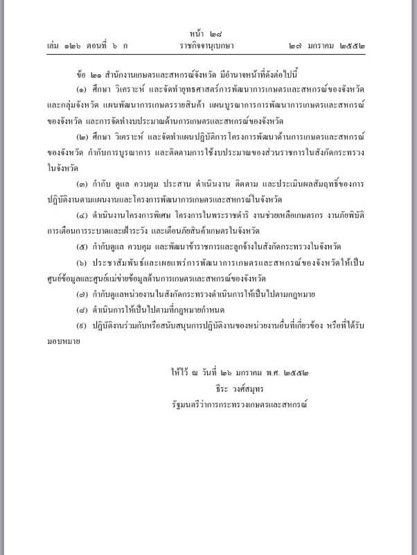 กฏกระทรวง การแบ่งส่วนราชการสำนักงานปลัดกระทรวงเกษตรและสหกรณ์ พ.ศ.2552