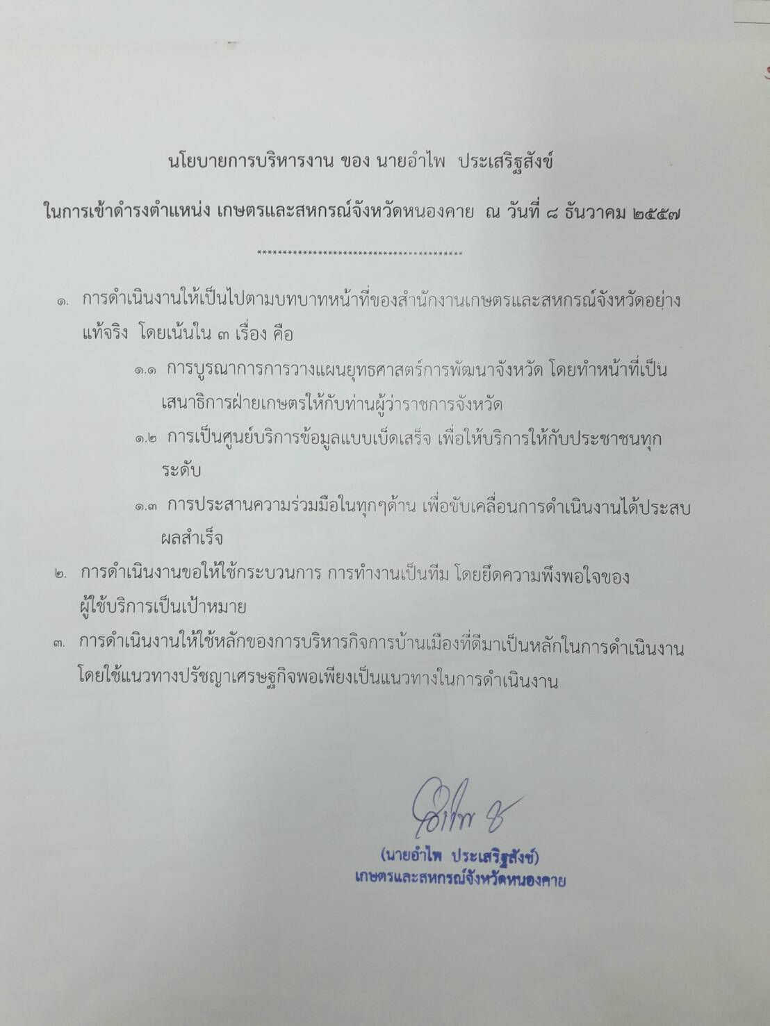 นโยบายของเกษตรและสหกรณ์จังหวัดหนองคาย