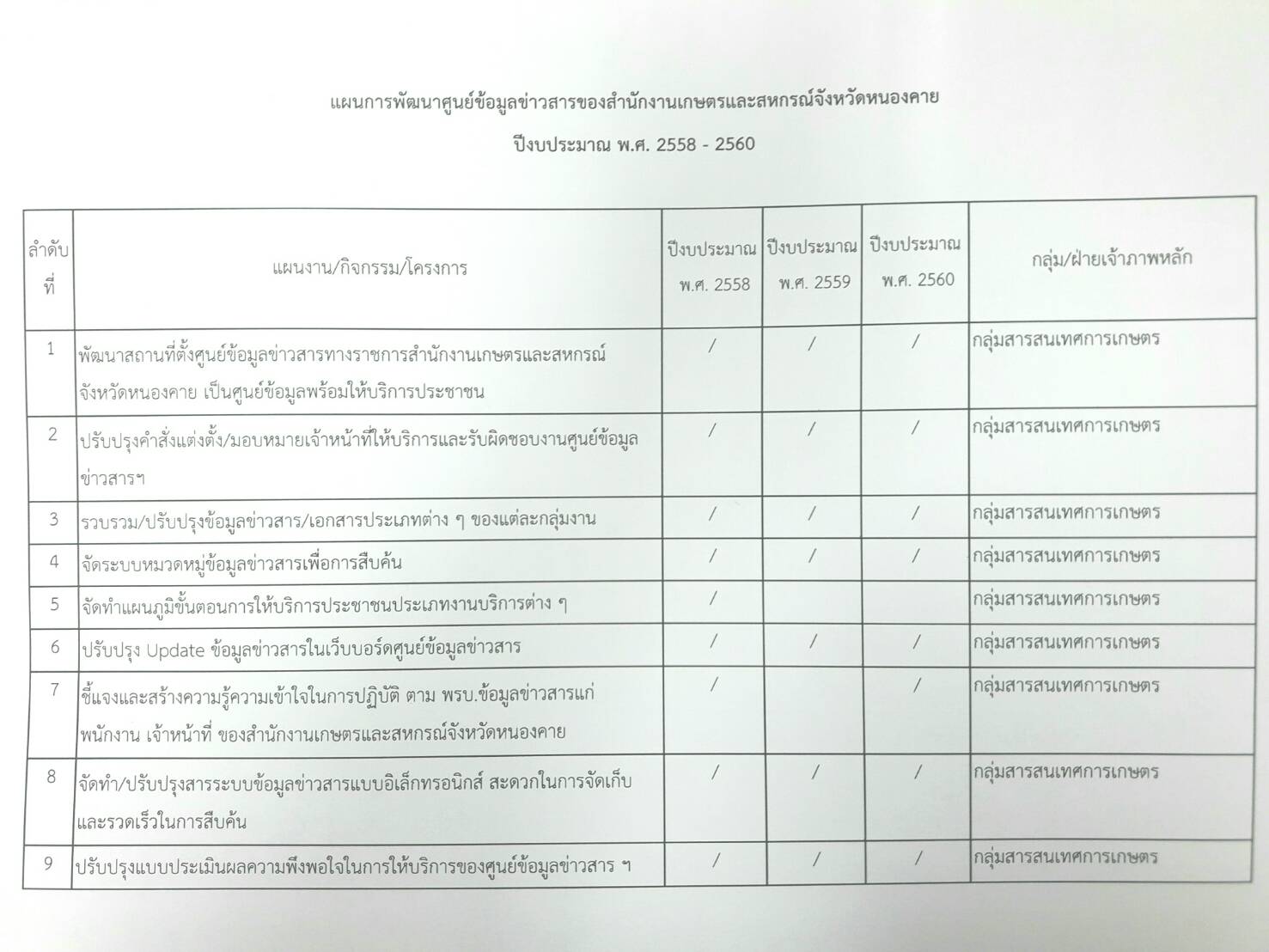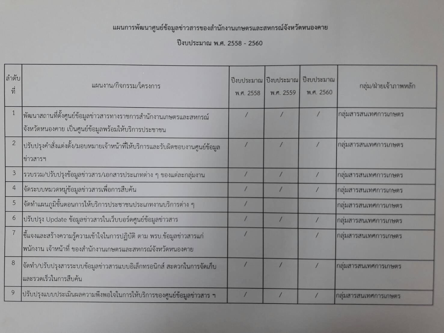แผนพัฒนาศูนย์ข้อมูลข่าวสารของสำนักงานเกษตรและสหกรณ์จังหวัดหนองคาย ปี 2560