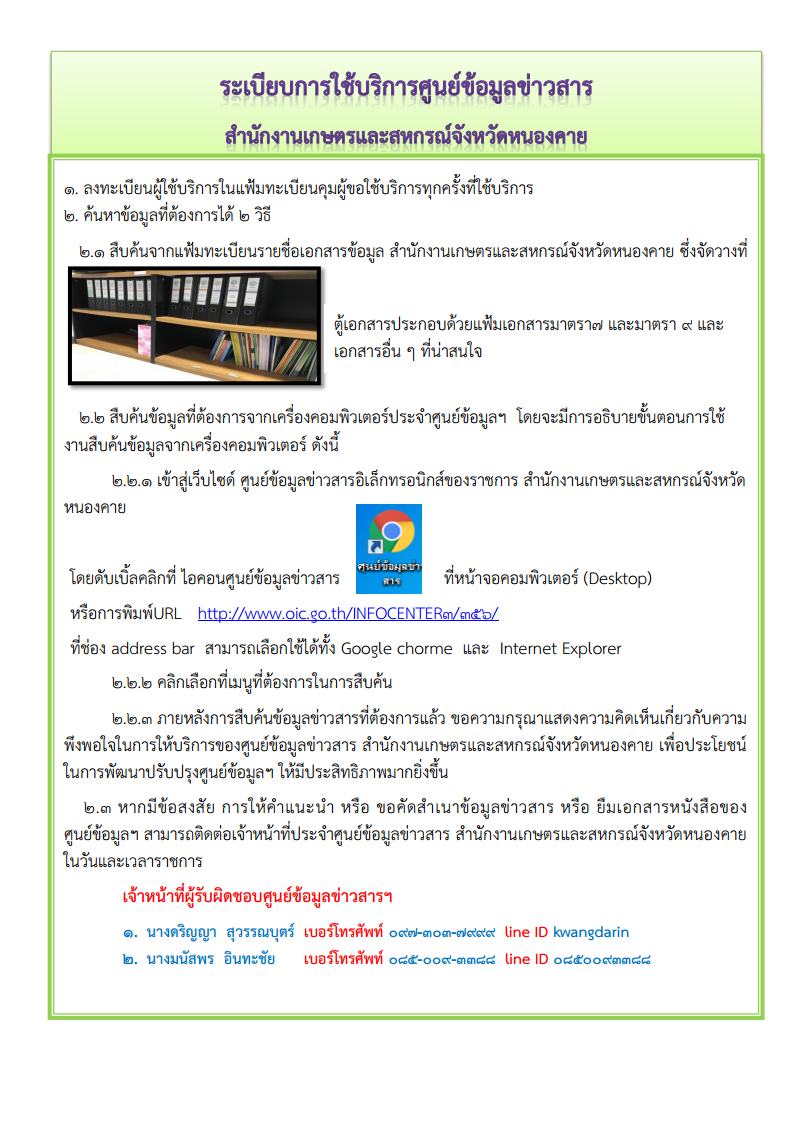 ข้อ 2 คู่มือการปฏิบัติงานศูนย์ข้อมูลข่าวสารทางราชการสำนักงานเกษตรและสหกรณ์จังหวัดหนองคาย