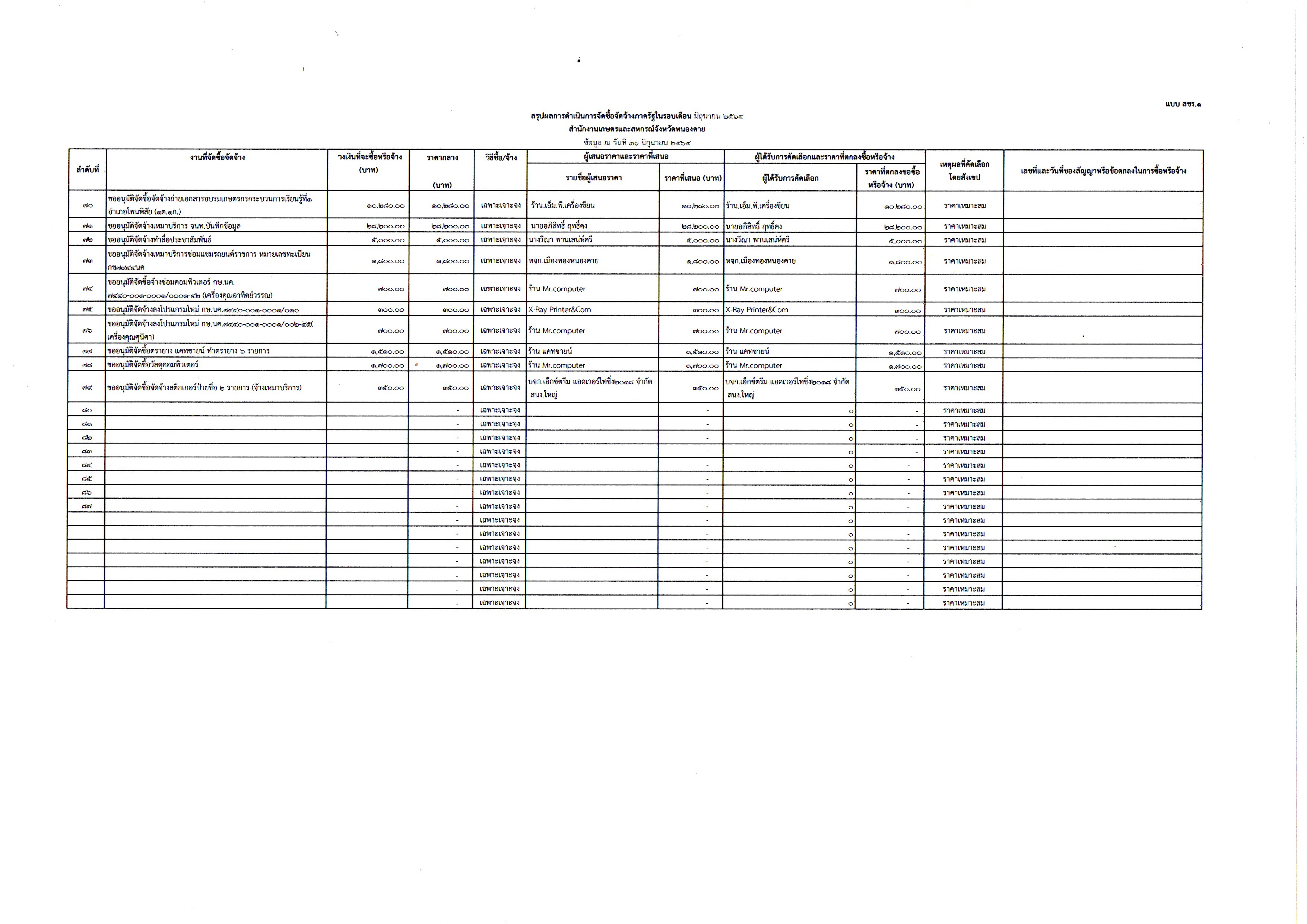 สรุปผลการจัดซื้อจัดจ้าง เดือนตุลาคม 2565