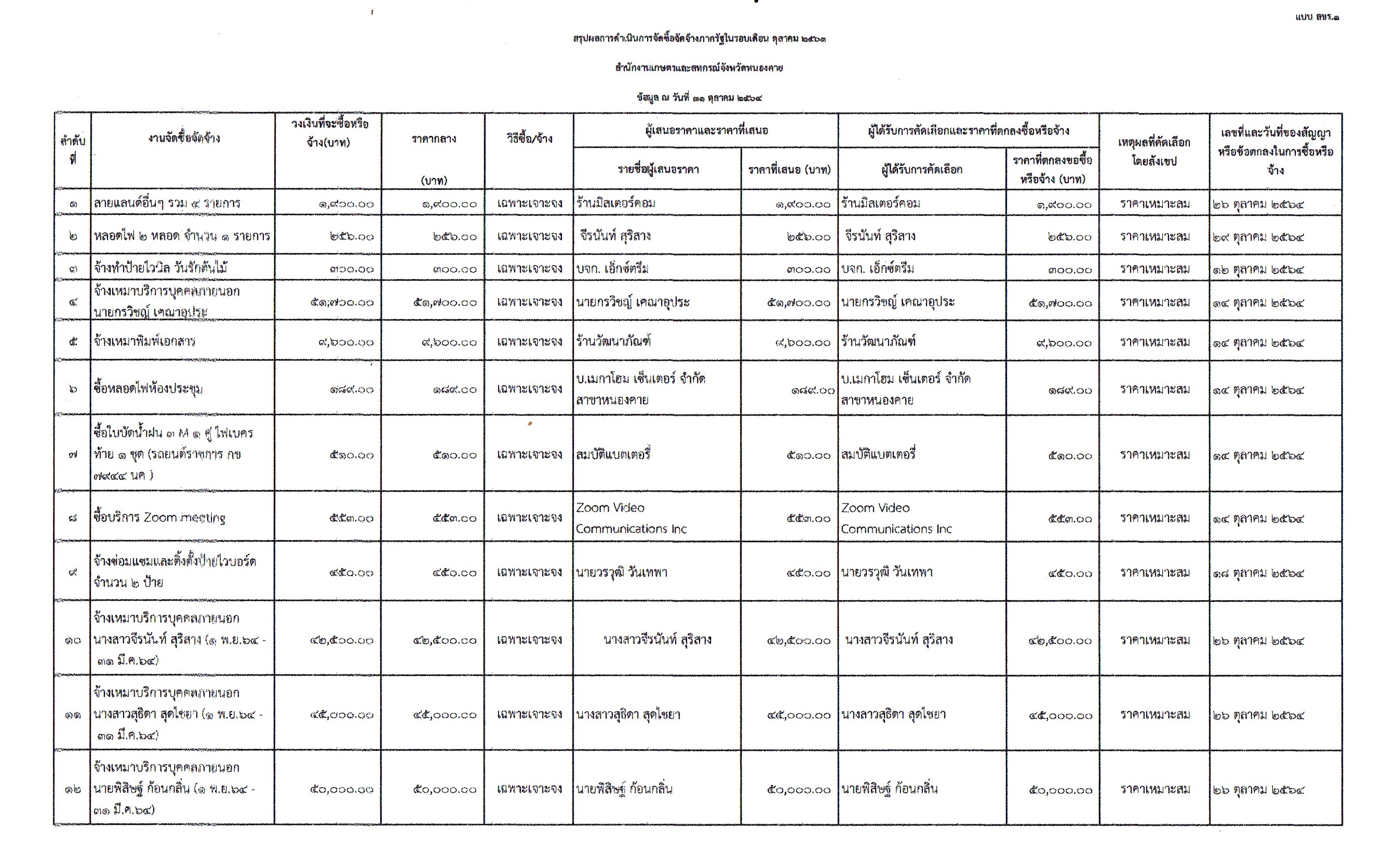 สรุปการจัดซื้อจัดจ้าง ประจำเดือน ตุลาคม 2565