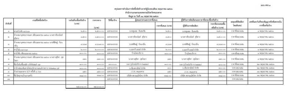 สรุปการจัดซื้อจัดจ้าง ประจำเดือน พฤศจิกายน 2565