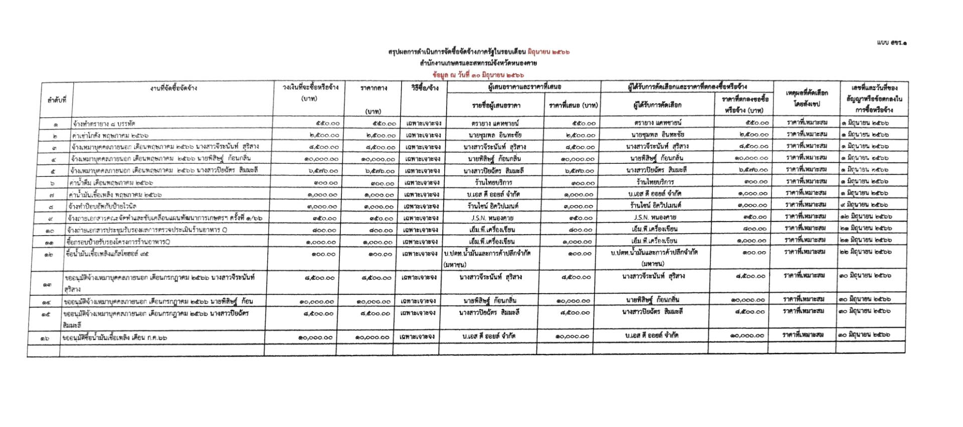 สรุปการจัดซื้อจัดจ้าง ประจำเดือน มิถุนายน 2566