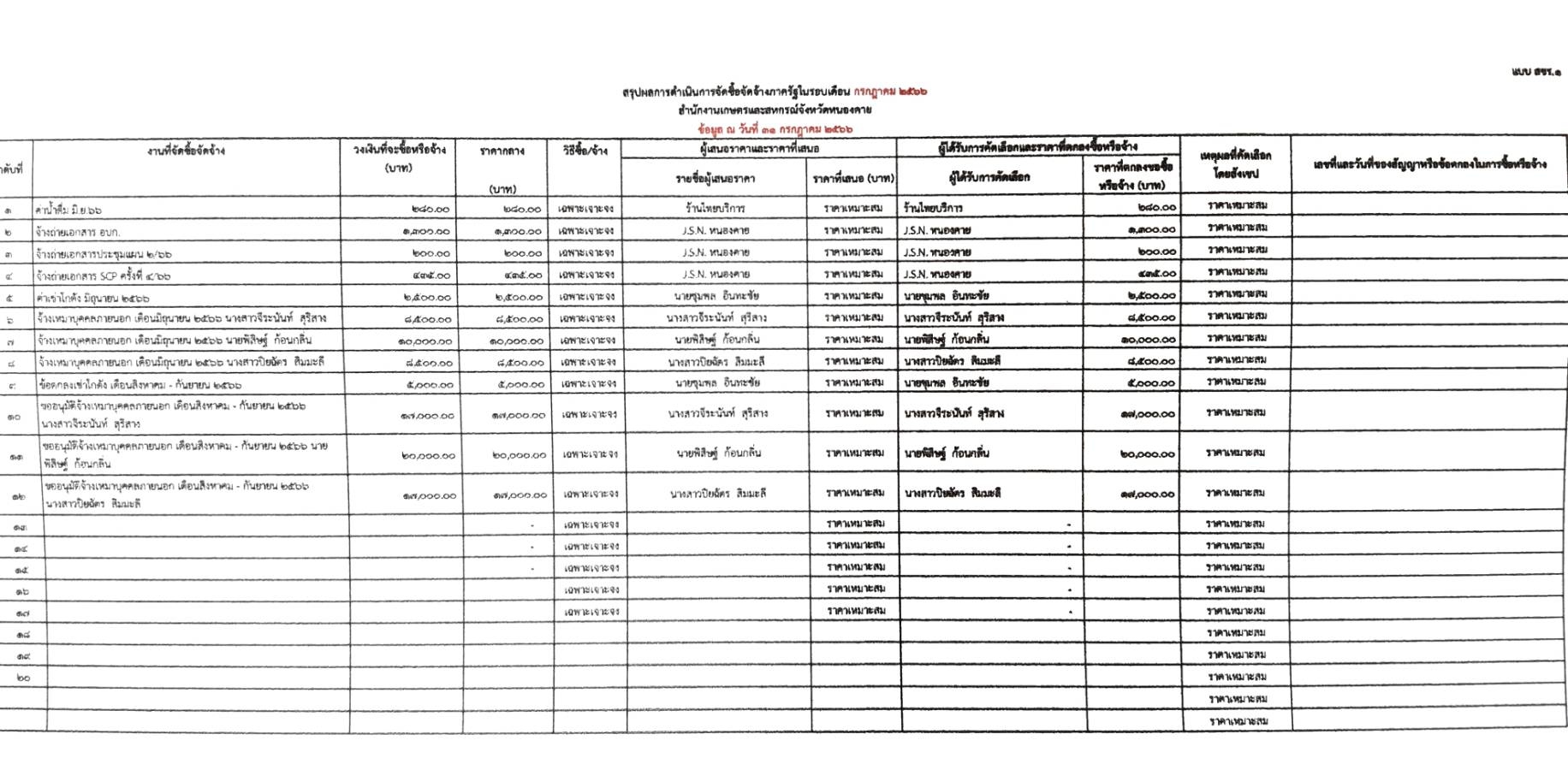 สรุปการจัดซื้อจัดจ้าง ประจำเดือน กรกฎาคม 2566