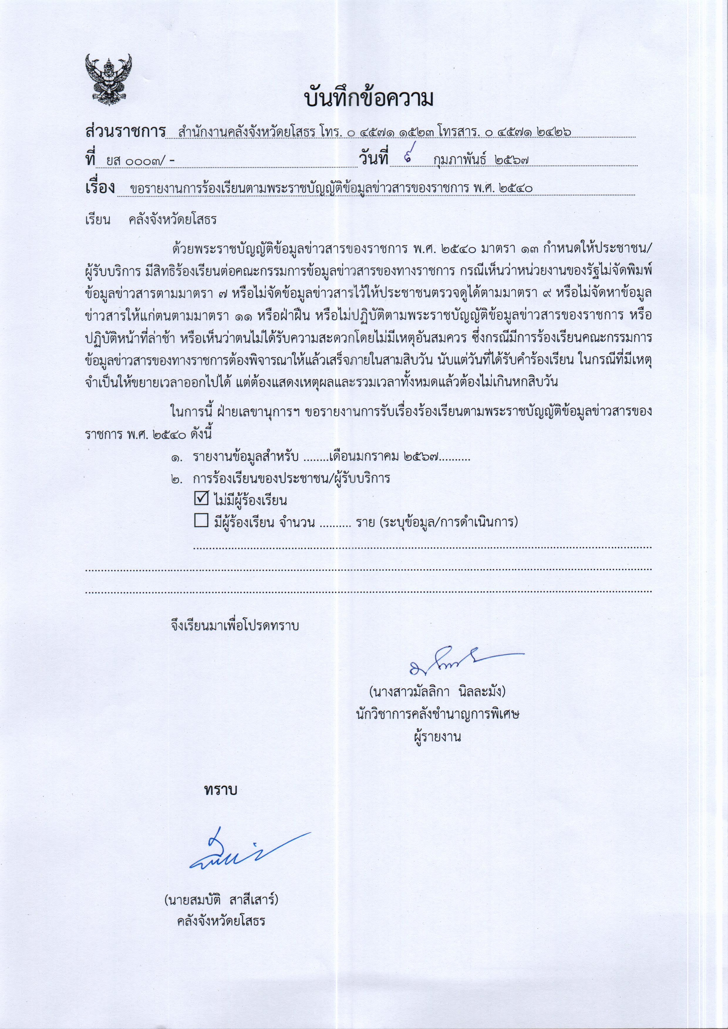 ไม่มีข้อมูลข่าวสาร เนื่องจากหน่วยงานไม่มีภารกิจที่เกี่ยวข้อง