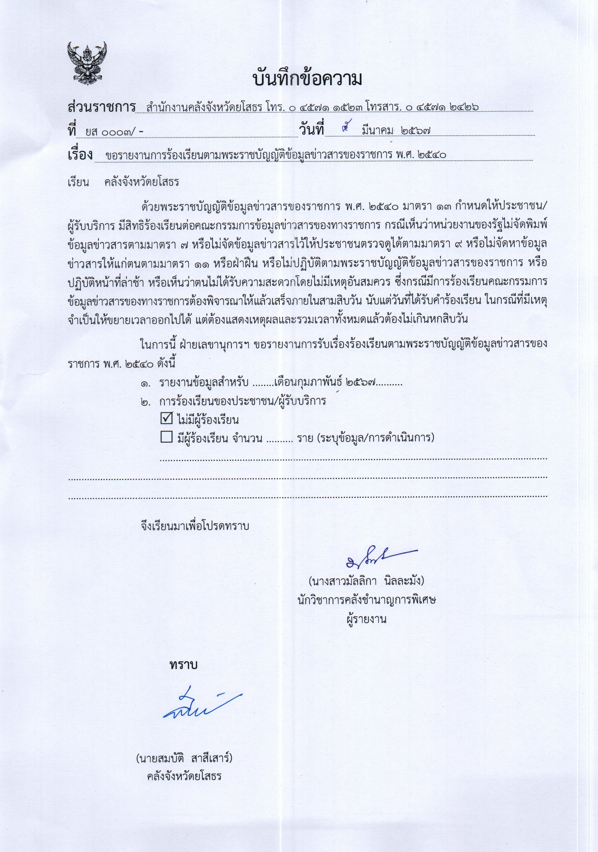 ใบสั่งจ้างถ่ายเอกสาร เลขที่ ยส0003/พัสดุ70 ลว23ก.พ.67