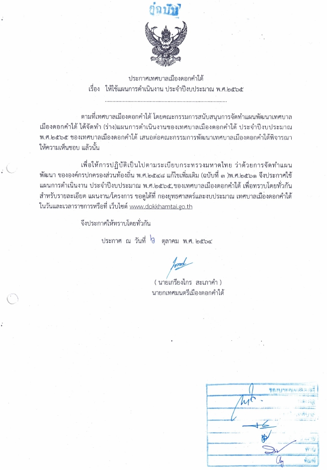 2 | การติดต่อหน่วยงานเทศบาลเมืองดอกคำใต้ | สำนักปลัด |