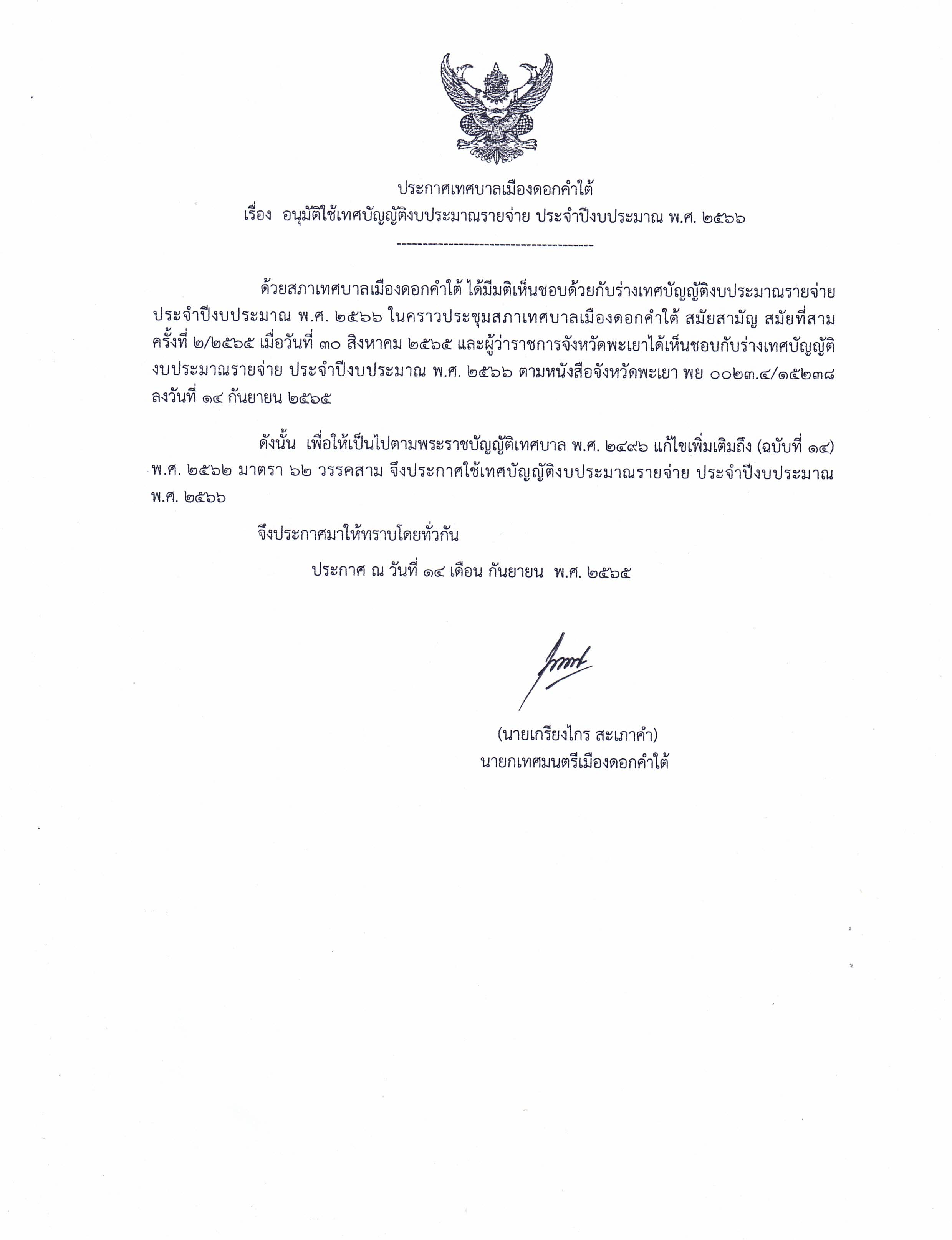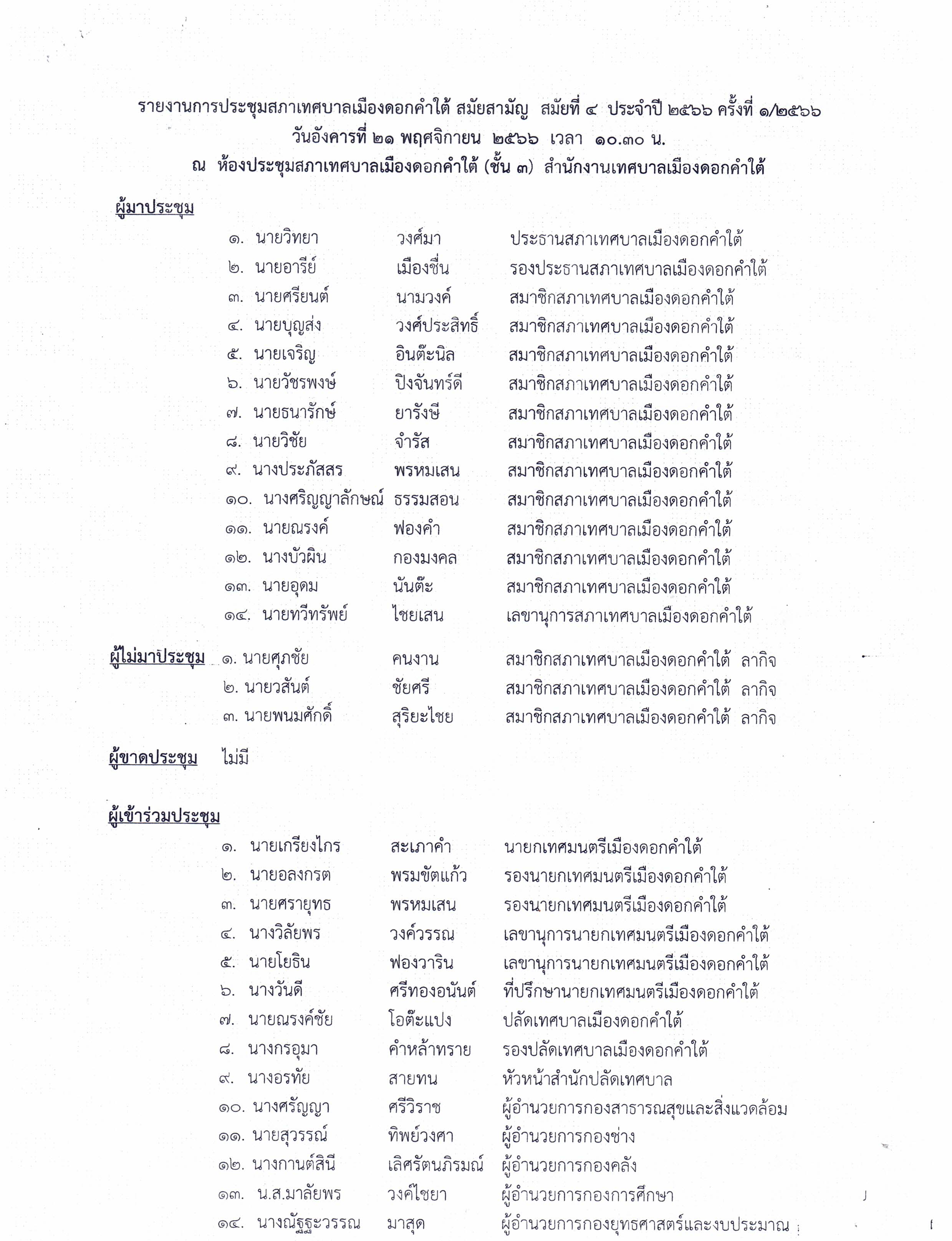 44 | รายงานการประชุมสภาเทศบาลเมืองดอกคำใต้ สมัยสามัญ สมัยที่ 4 ประจำปี 2566 ครั้งที่ 1/2566 | สำนักปลัด |