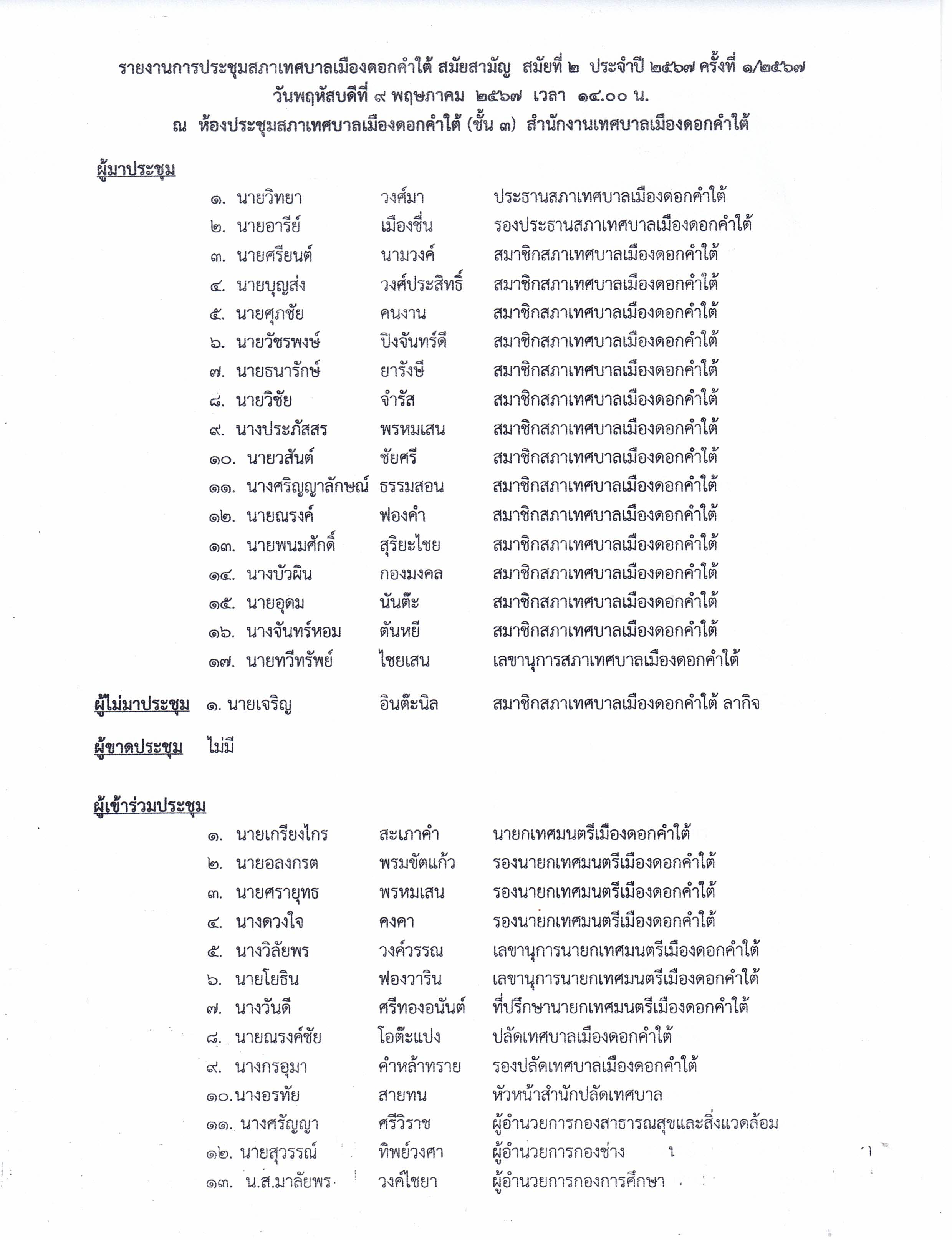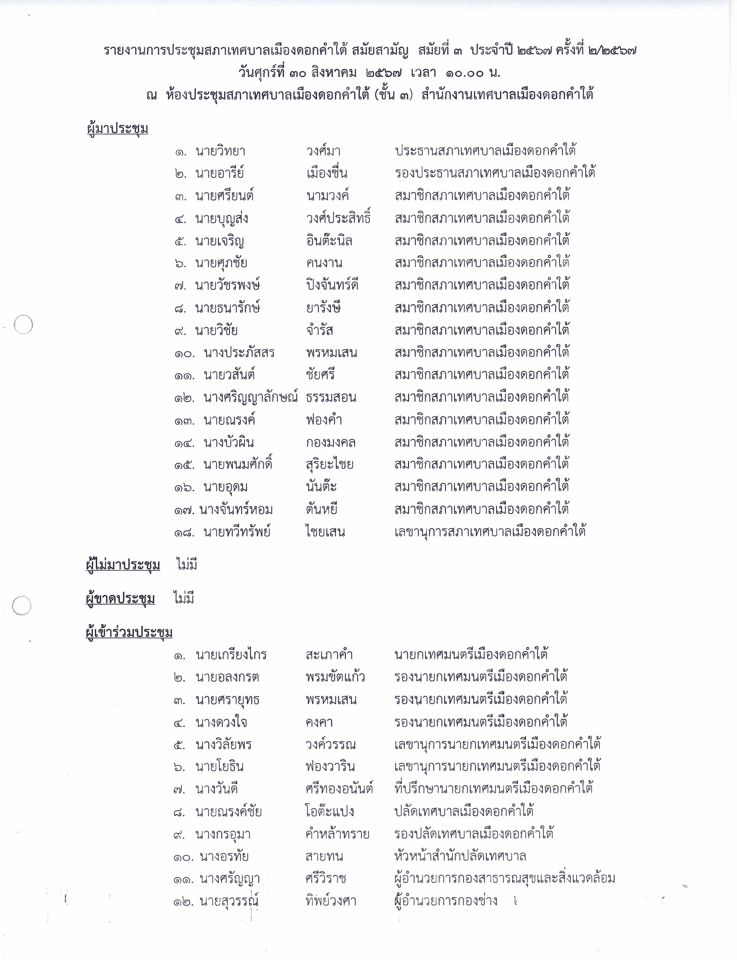 49 | รายงานการประชุมสภาเทศบาลเมืองดอกคำใต้ สมัยสามัญ สมัยที่ 3 ประจำปี 2567 ครั้งที่ 2/2567 | สำนักปลัด |
