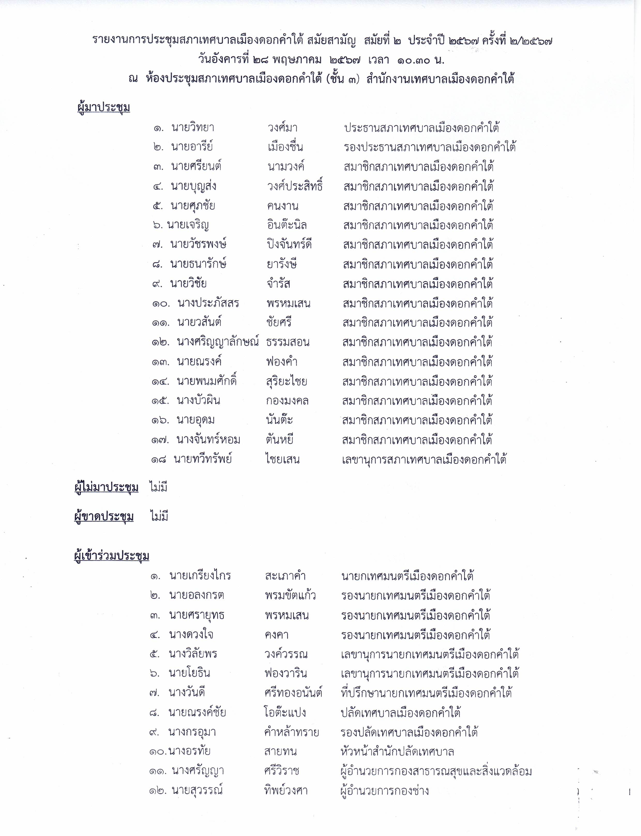 47 | รายงานการประชุมสภาเทศบาลเมืองดอกคำใต้ สมัยสามัญ สมัยที่ 2 ประจำปี 2567 ครั้งที่ 2/2567 | สำนักปลัด |