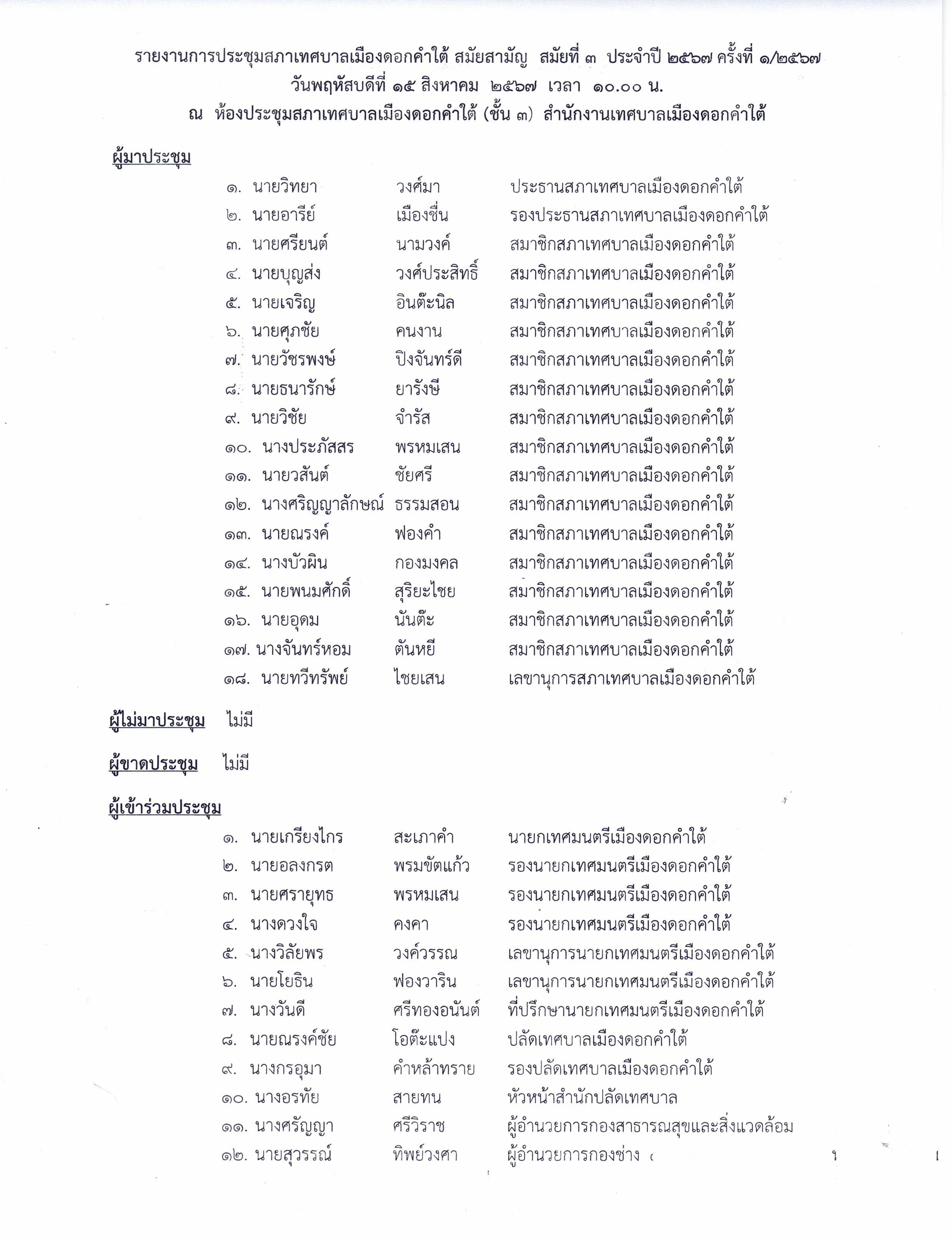 48 | รายงานการประชุมสภาเทศบาลเมืองดอกคำใต้ สมัยสามัญ สมัยที่ 3 ประจำปี 2567 ครั้งที่ 1/2567 | สำนักปลัด |