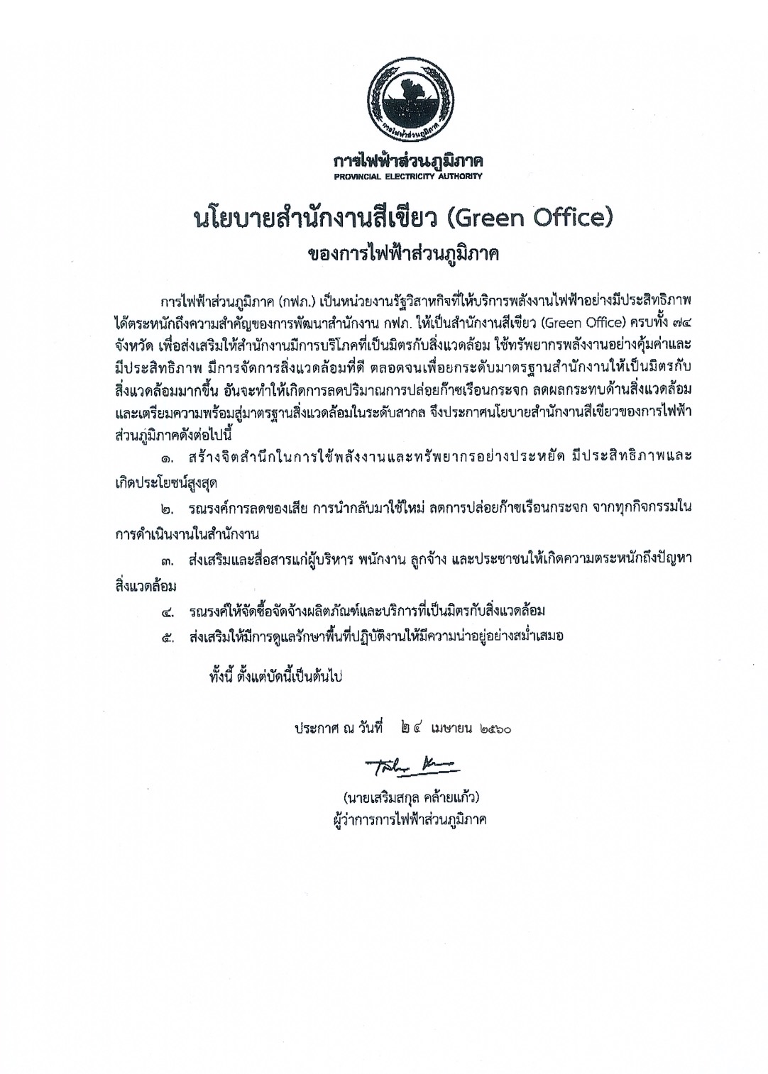 หนังสือสัญญาจ้างงานตัดต้นไม้ใกล้แนวระบบไฟฟ้า ที่ กฟส.อ.อท.051/2562