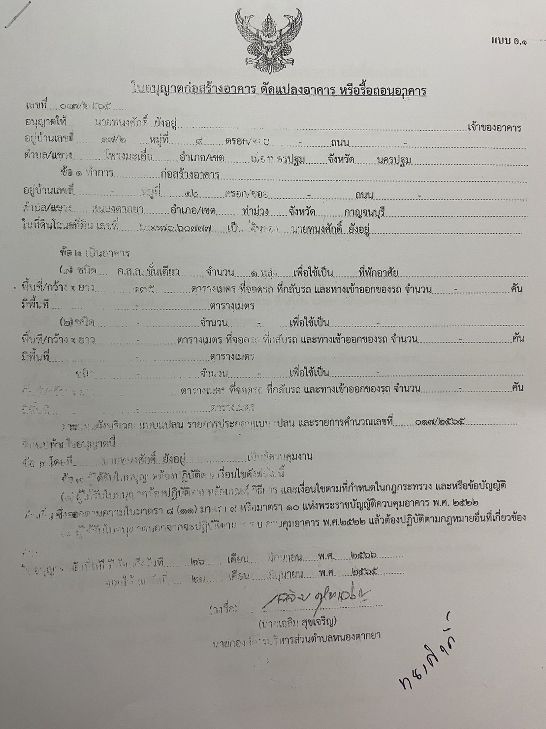 ผลการอนุญาตปลูกสร้างบ้านพักอาศัย ของนายทนงศักดิ์ ยังอยู่