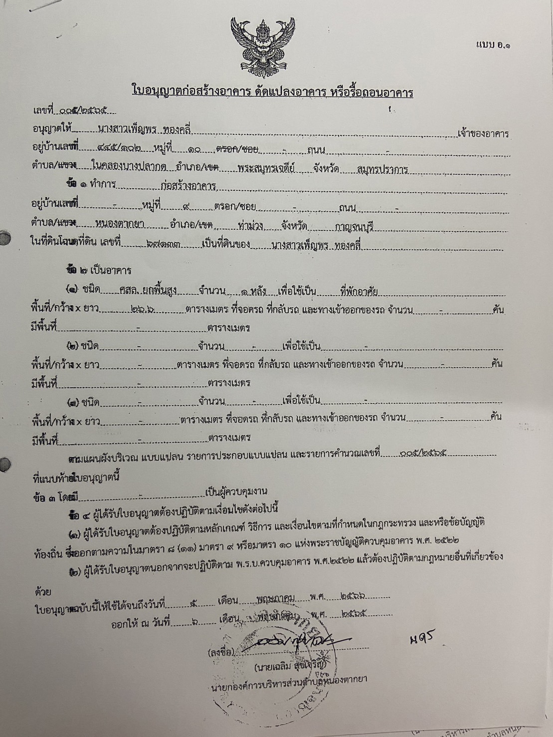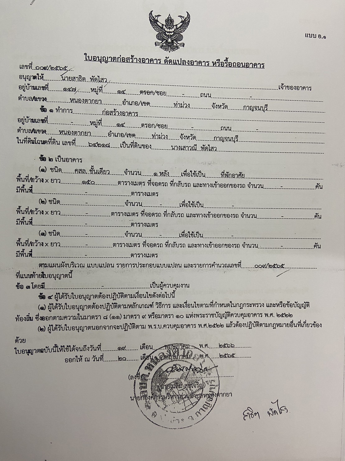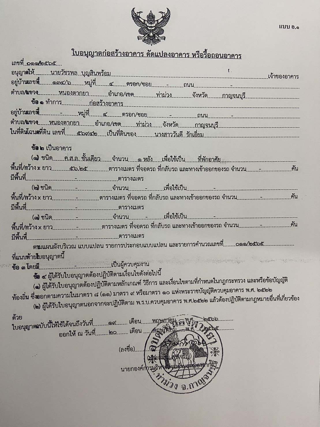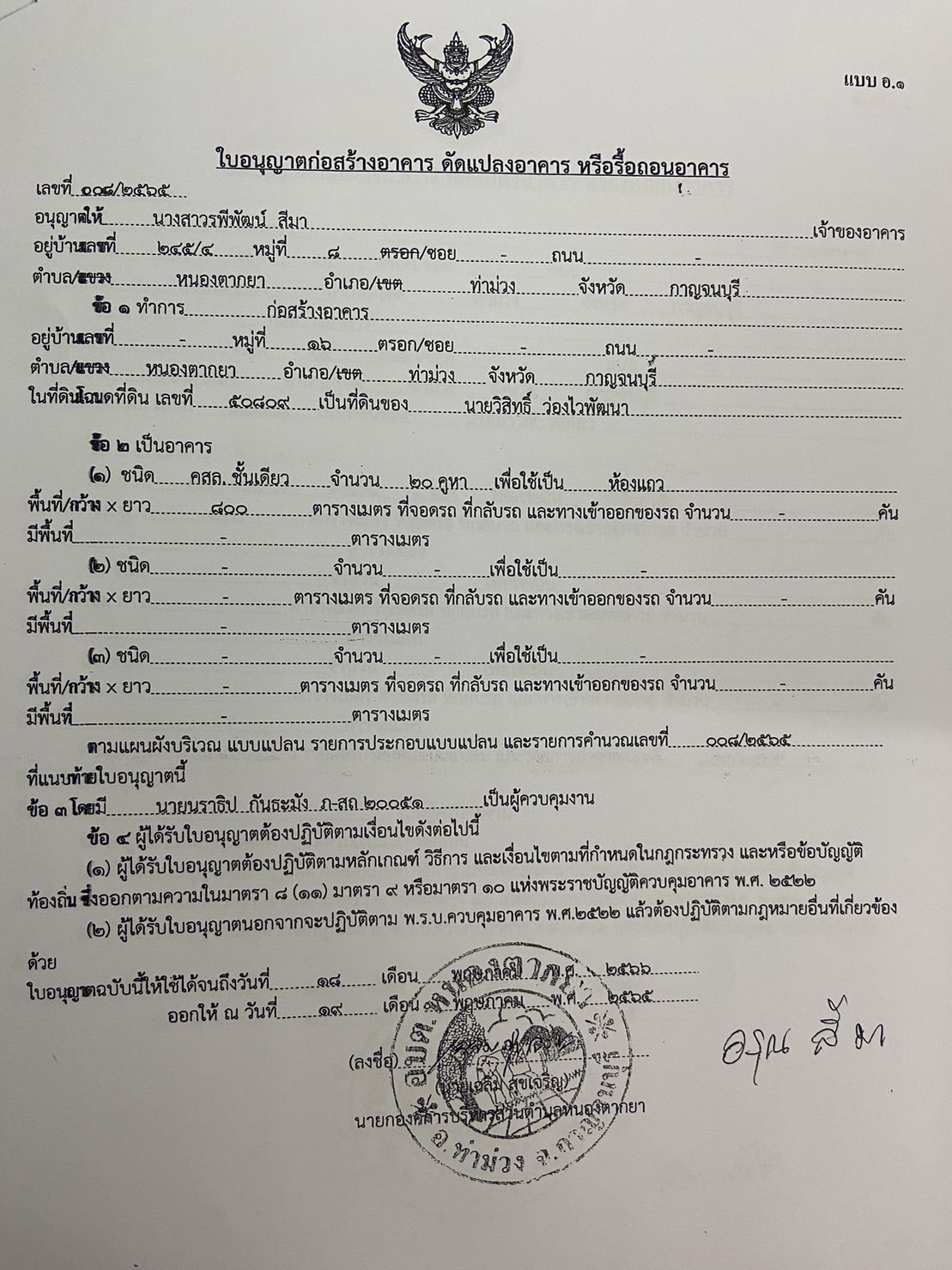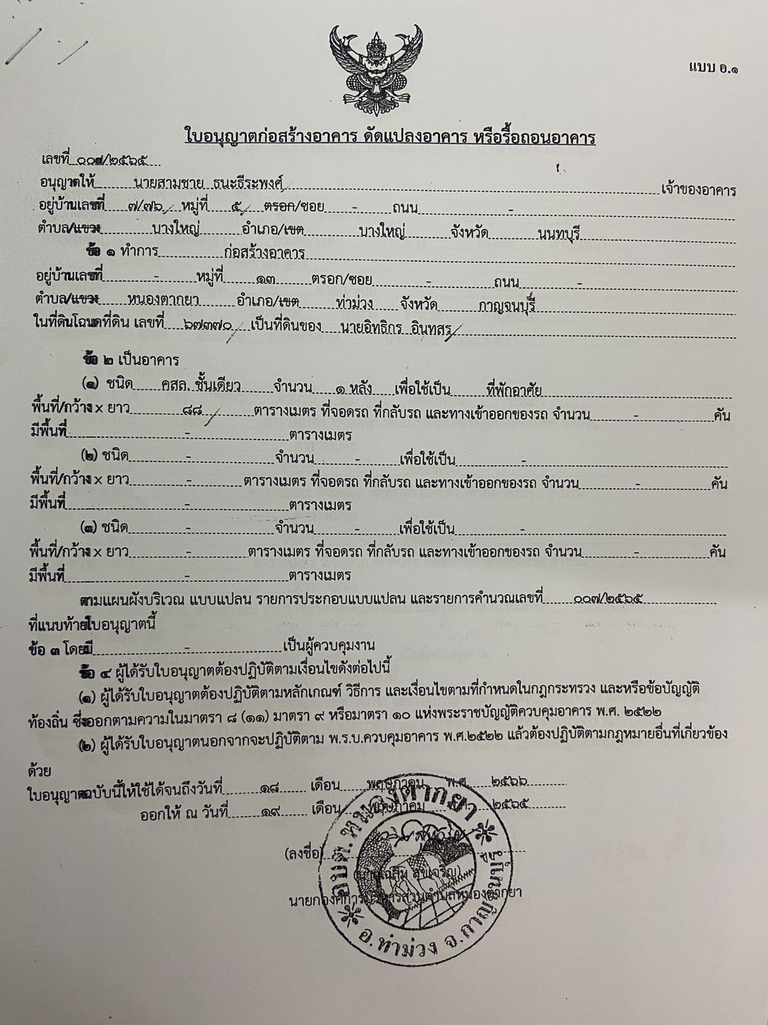 ผลการอนุญาตปลูกสร้างบ้านพักอาศัย ของนายจักราวุธ อายุวัฒนากุล