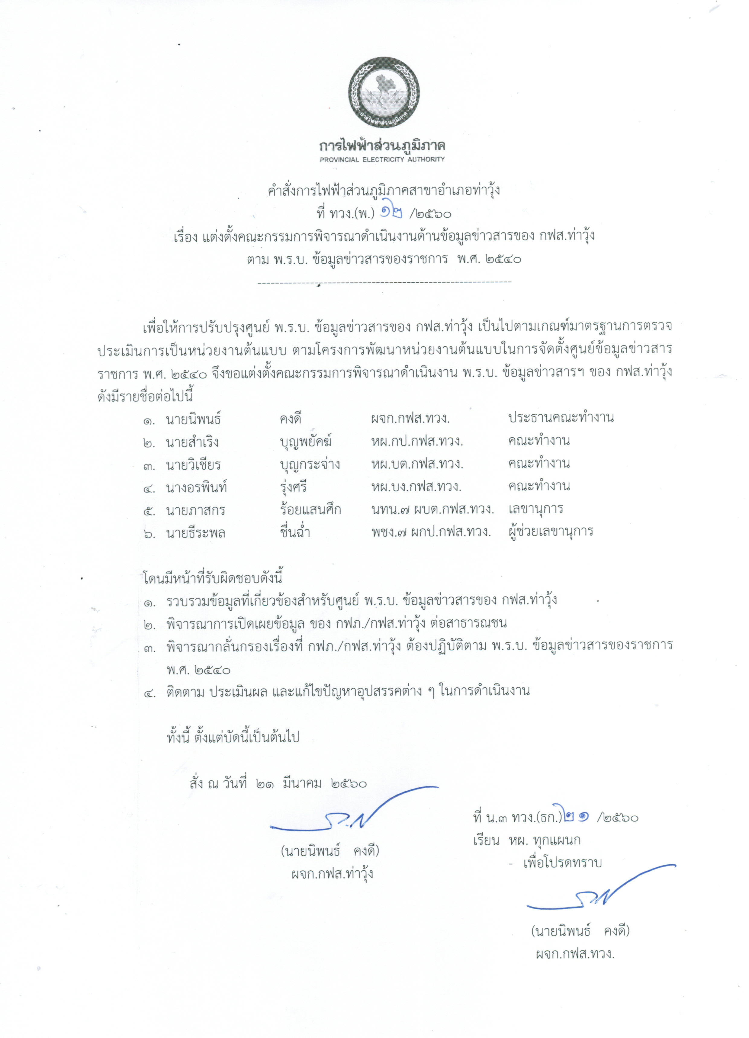 สัญญาจ้างเหมางานสำรวจปรับปรุงข้อมูลเฟสมิเตอร์ที่ติดตั้งเดิม ของ กฟส.ทวง.