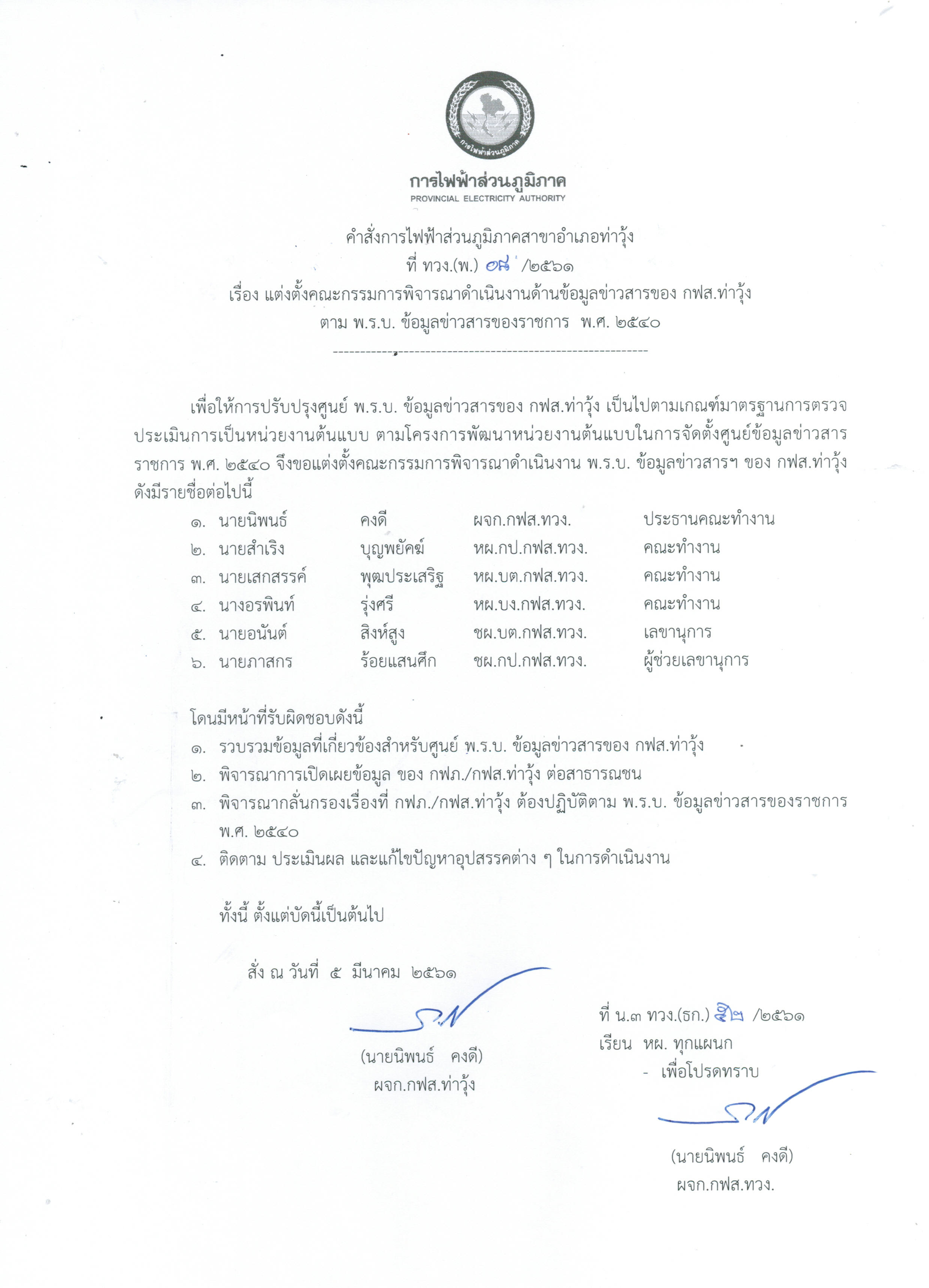 สัญญาจ้างเหมางานรักษาความปลอดภัย กฟส.ท่าวุ้ง(จ.5) ประจำเดือน 2561