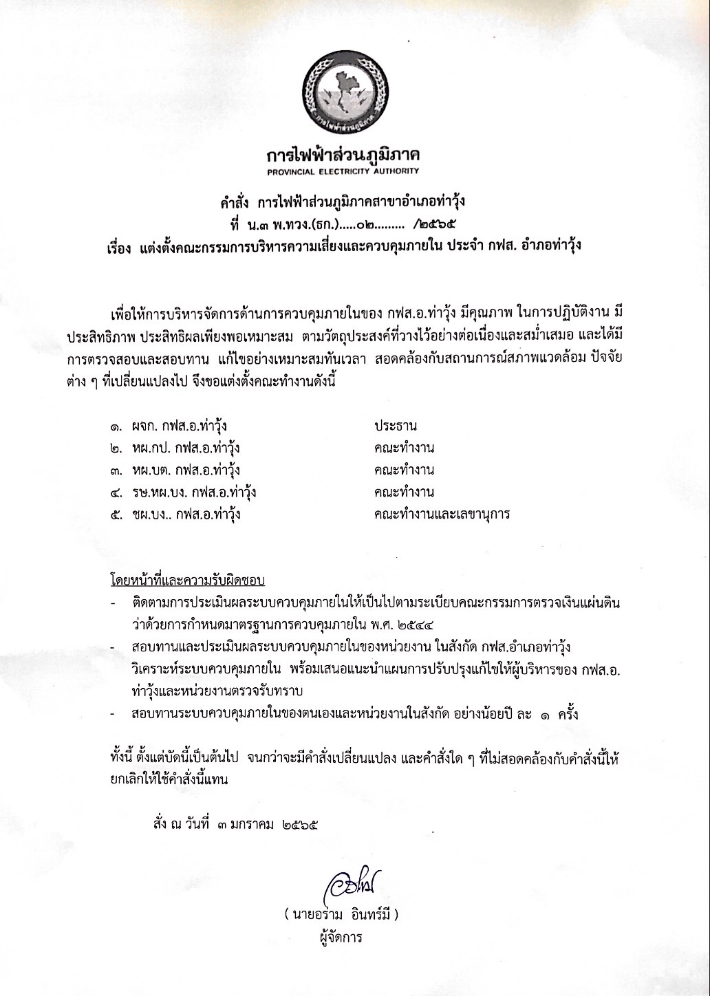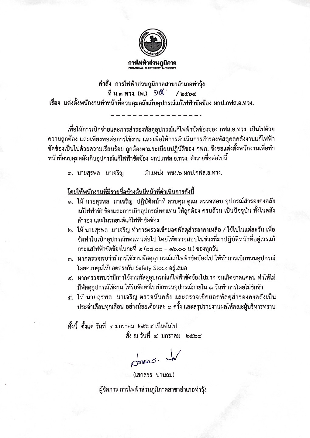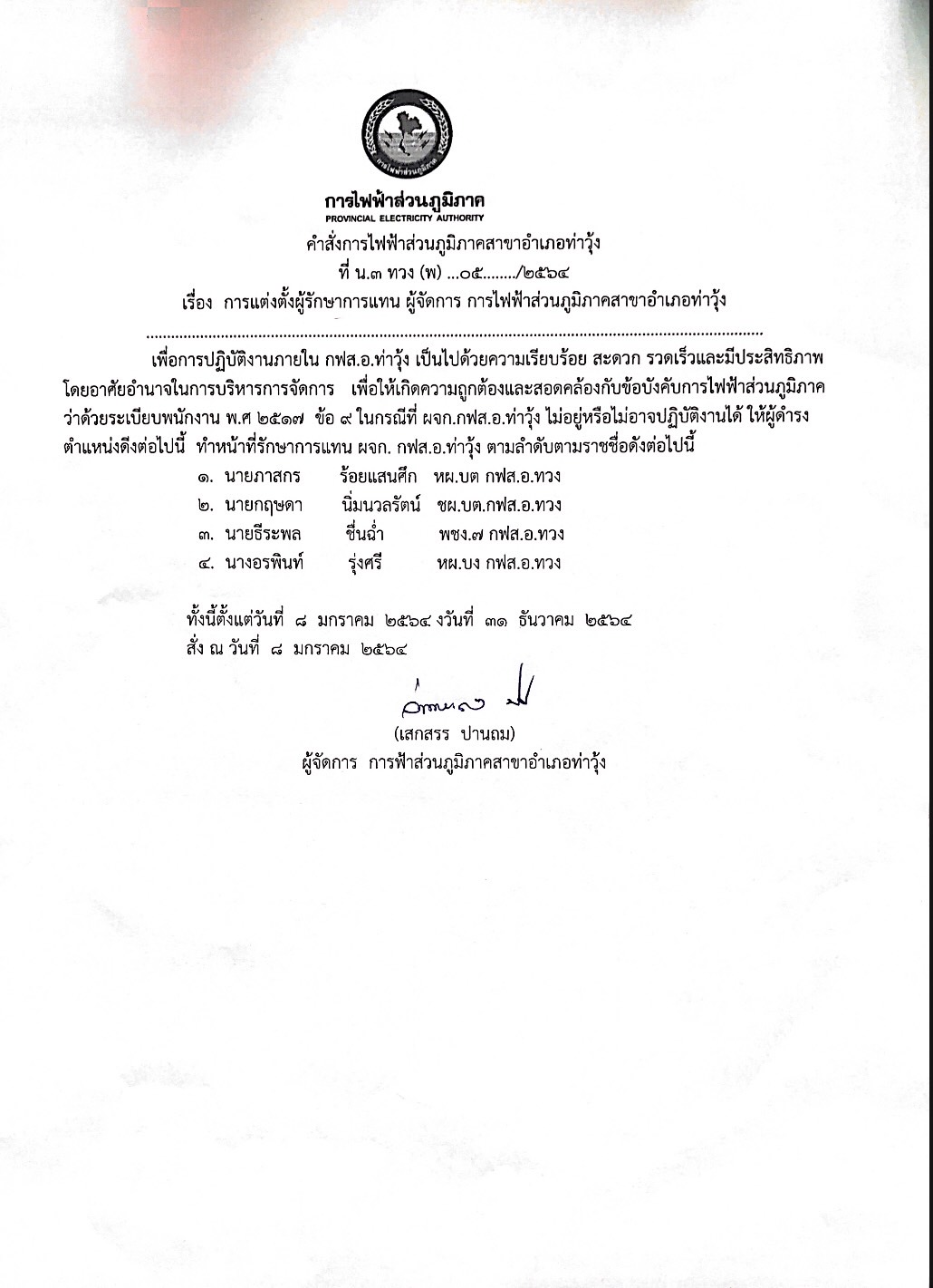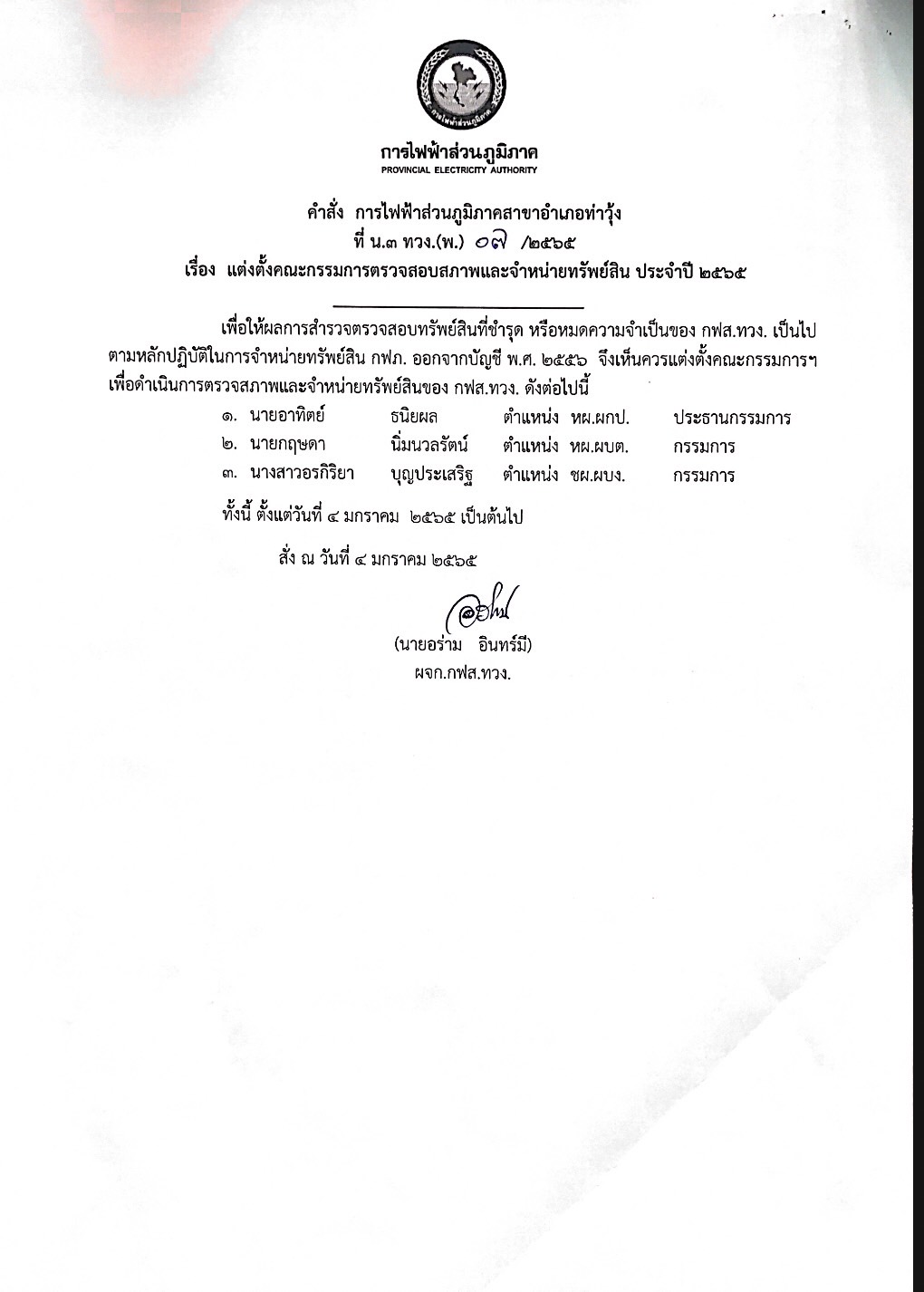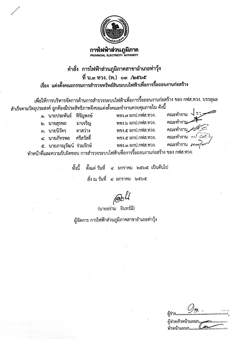 สัญญาจ้างงานติดตั้งตะแกรงพร้อมทาสีรางระบายน้ำ กฟส.อ.ทวง. (น.3 จ.ทวง.(กป.) 8/2565 ลว. 24 ม.ค. 2565)