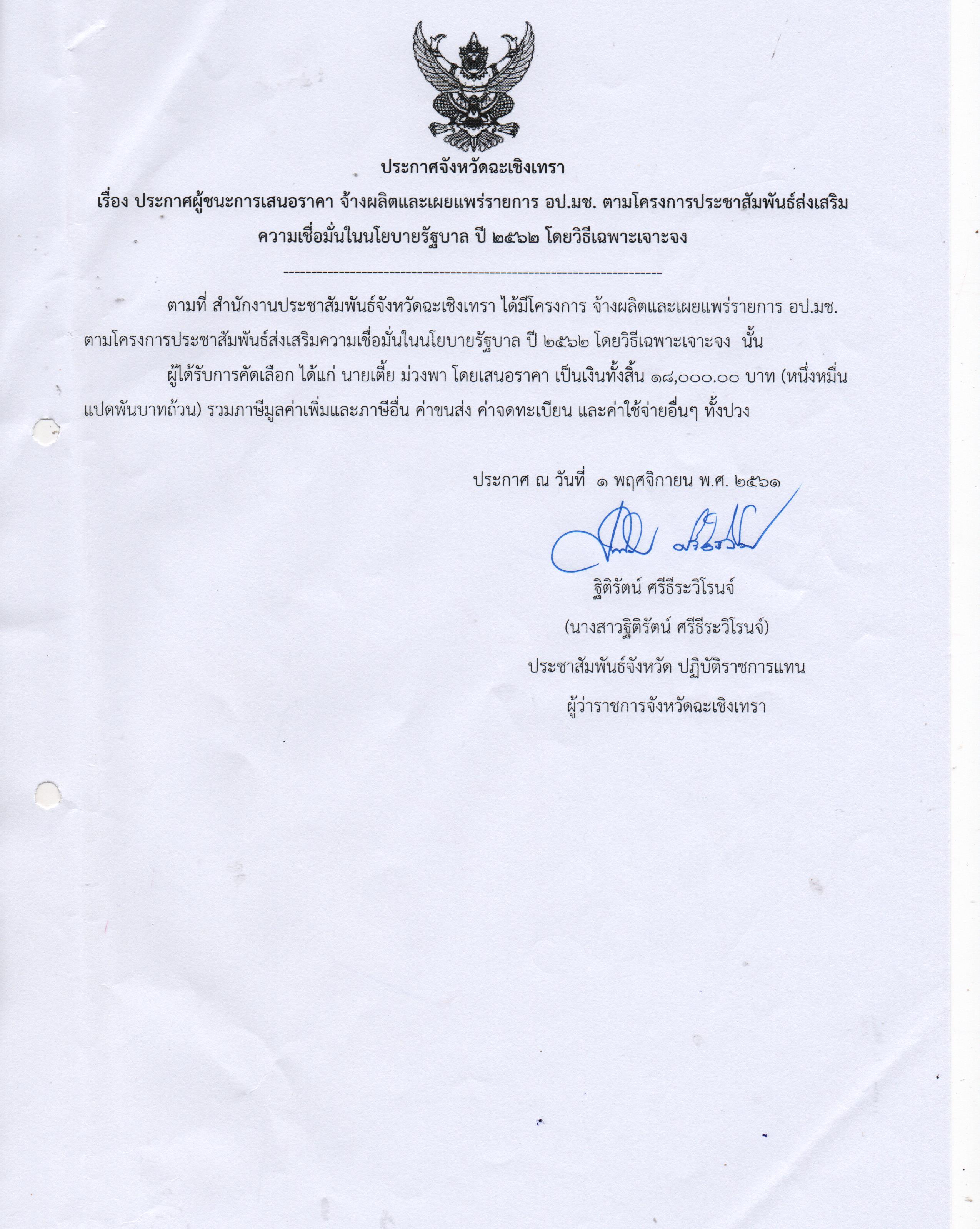 ข่าวสารอื่นๆ ที่คณะกรรมการกำหนด ม.9(8) กำหนดให้ประกาศเชิญชวนทั่วไป | |||