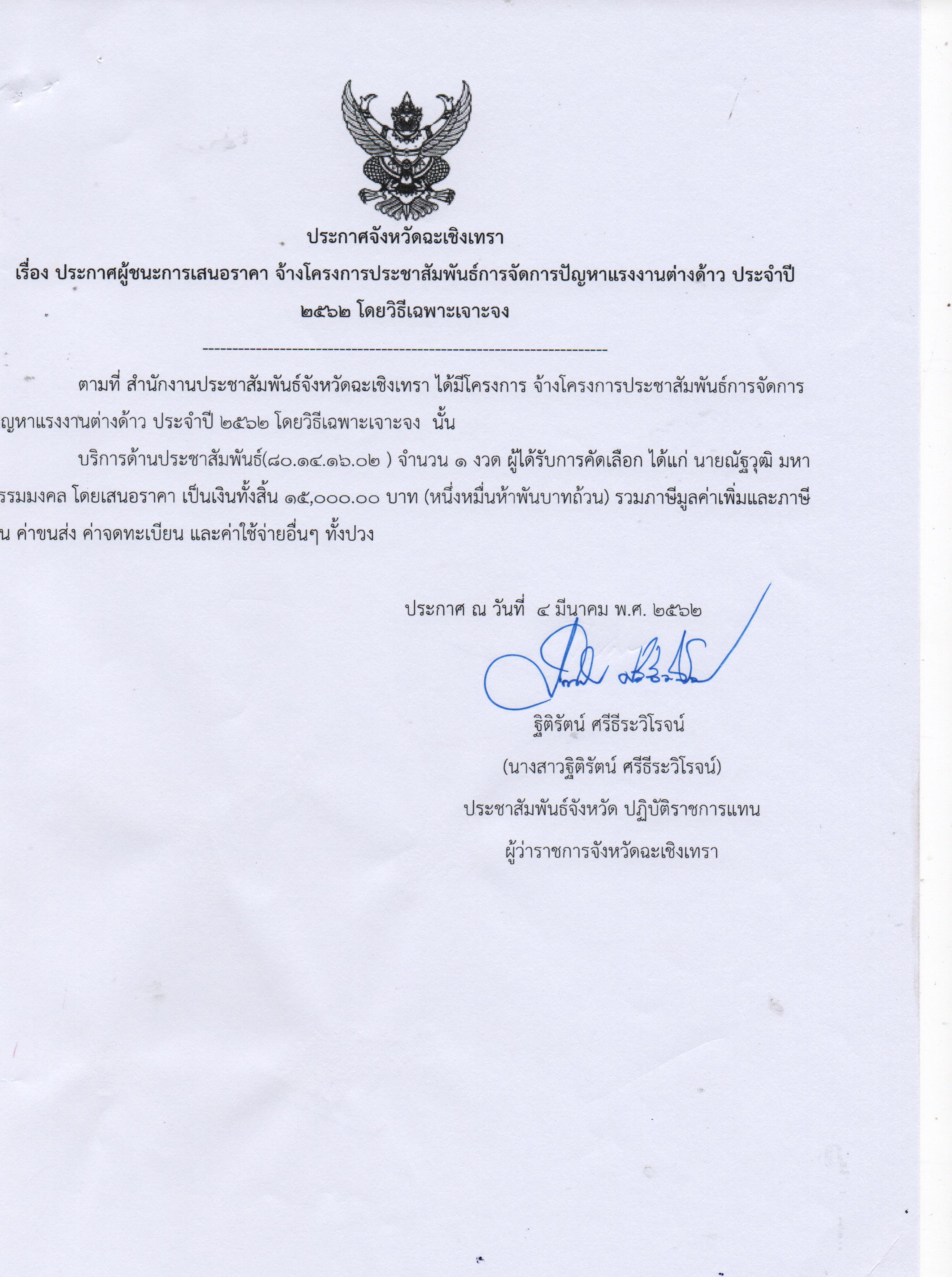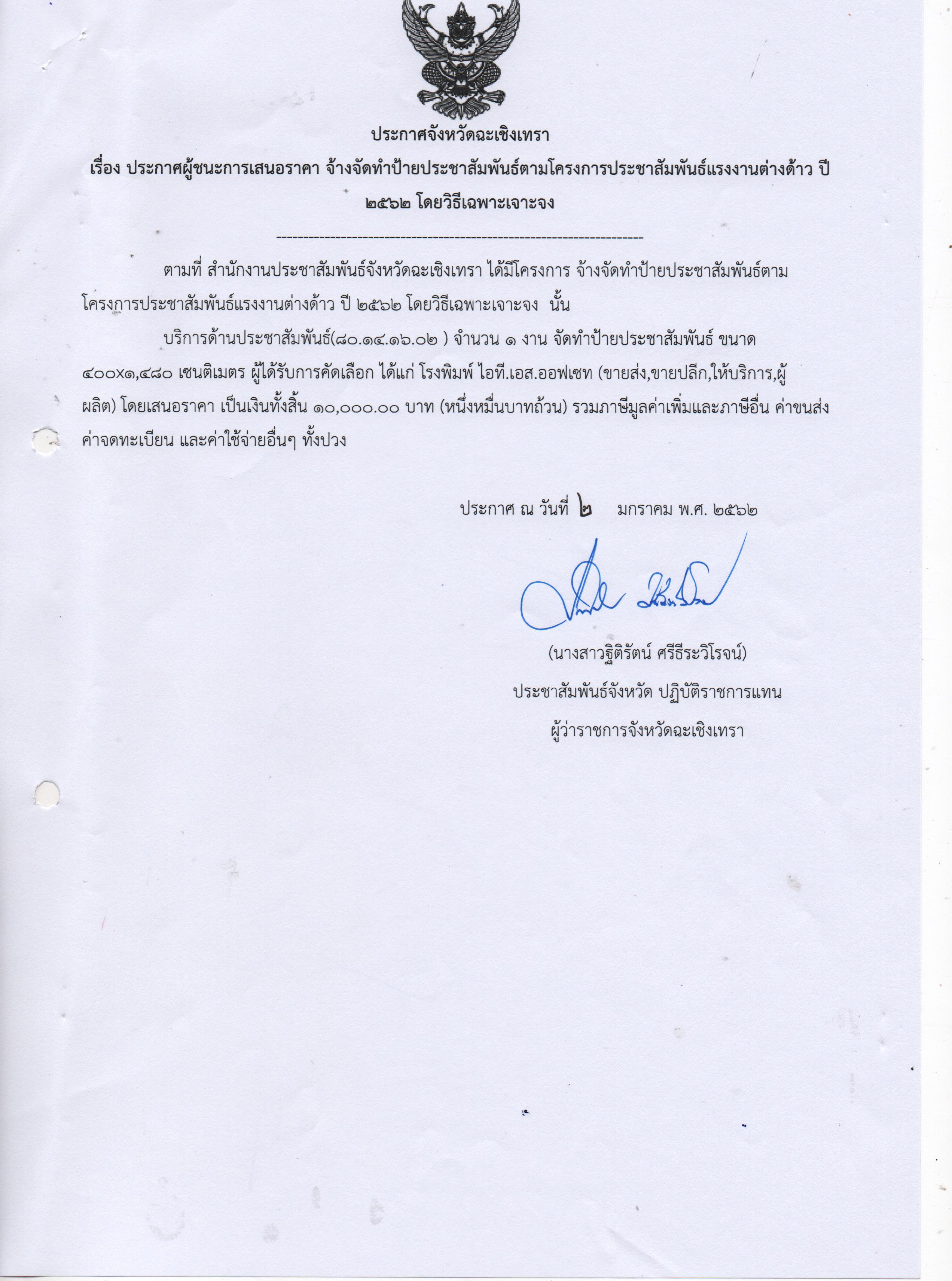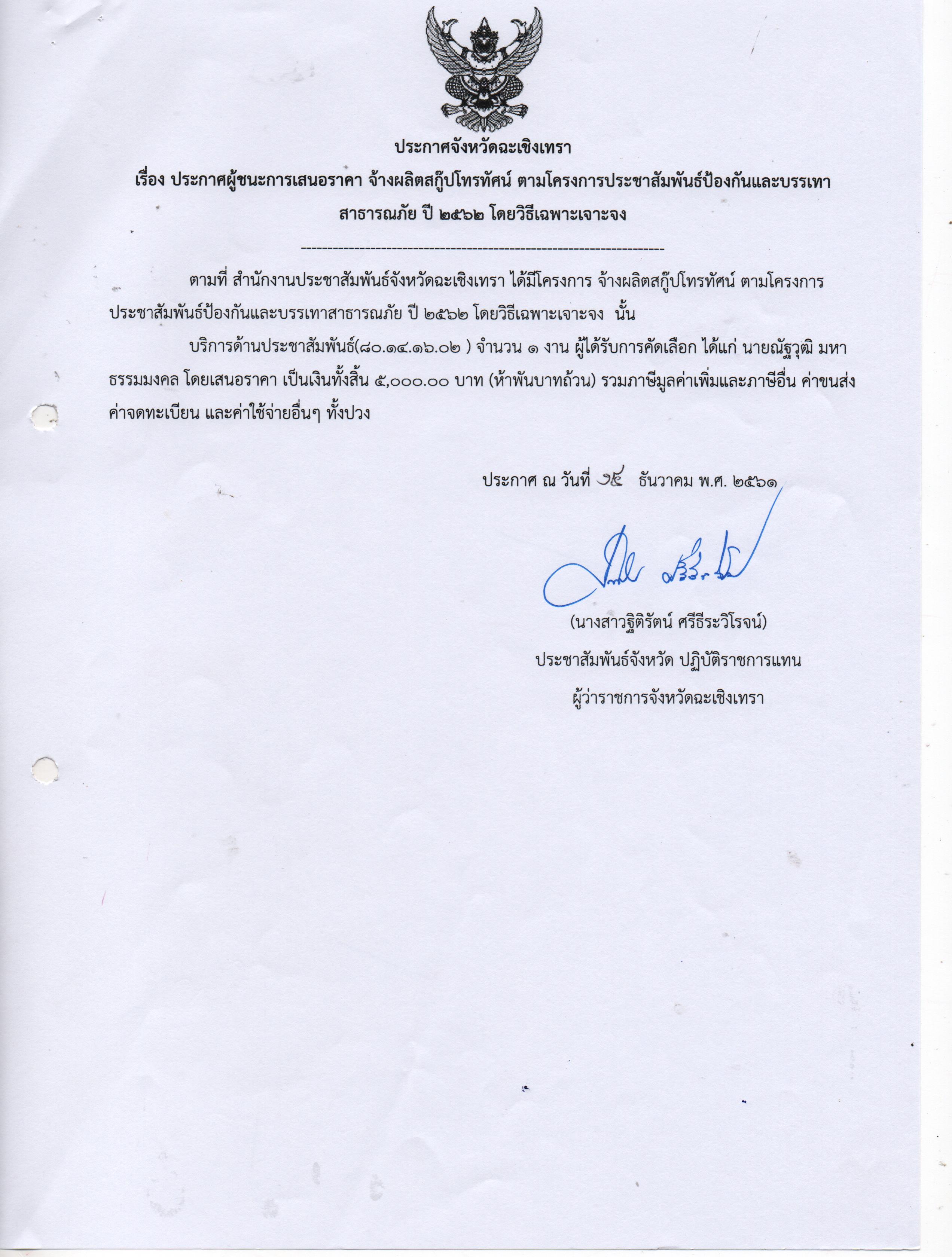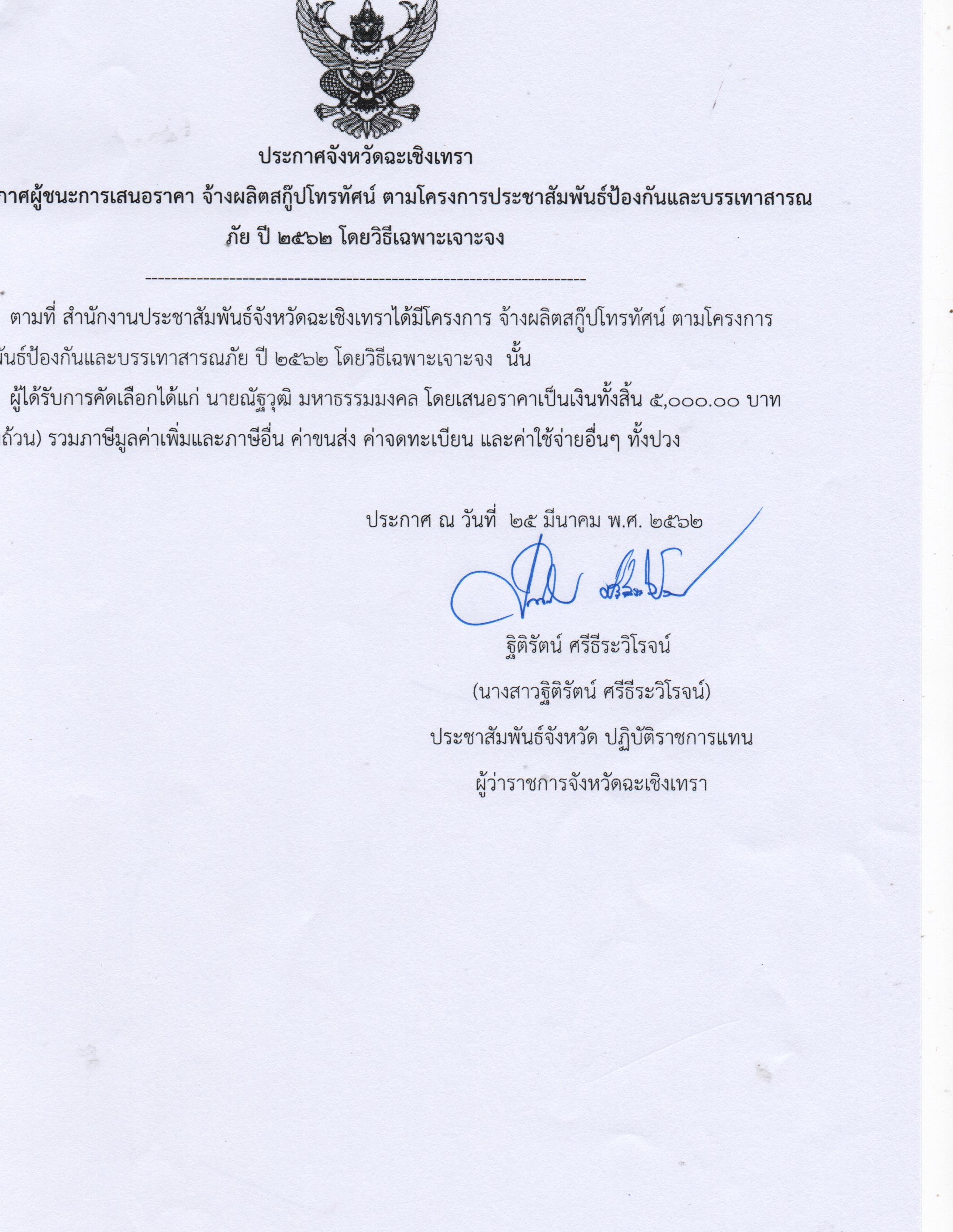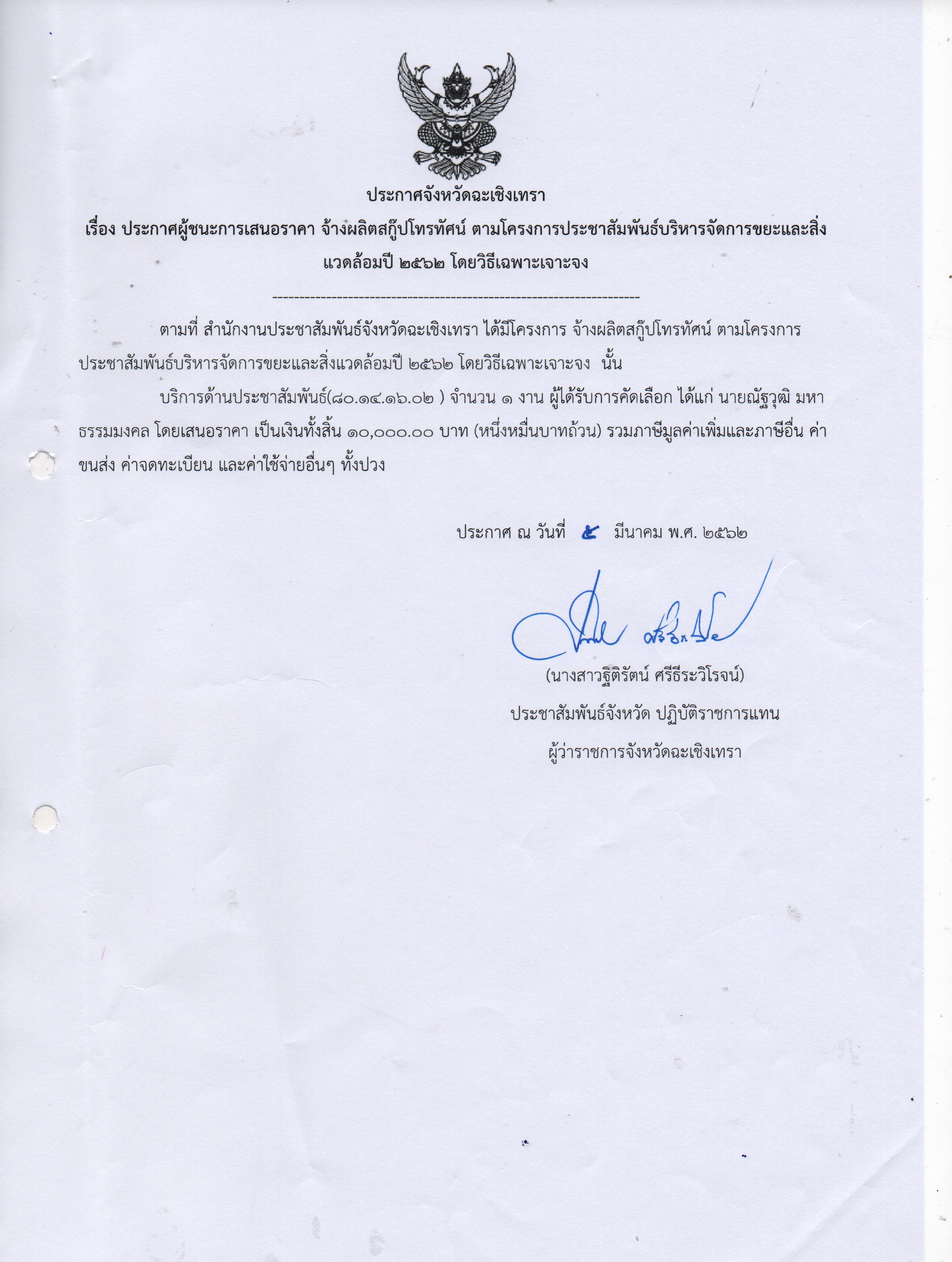 | 2 | คำสั่งแต่งตั้งเจ้าหน้าที่ศูนย์ข้อมูลข่าวสาร สำนักงานประชาสัมพันธ์จังหวัดฉะเชิงเทรา วันที่ 2 มีนาคม 2564 | - | - |