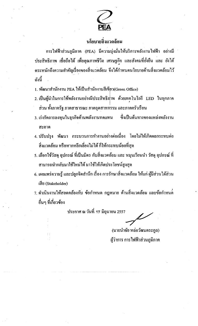 นโยบายสำนักงานสีเขียว (Green Office) ของการไฟฟ้าส่วนภูมิภาค