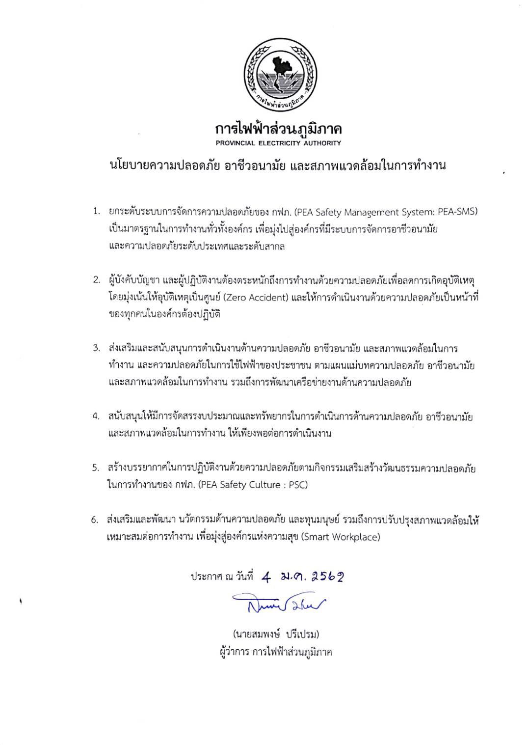 ข้อ 4 (4.1) แผนการดำเนินงาน กฟภ. ปี 2562