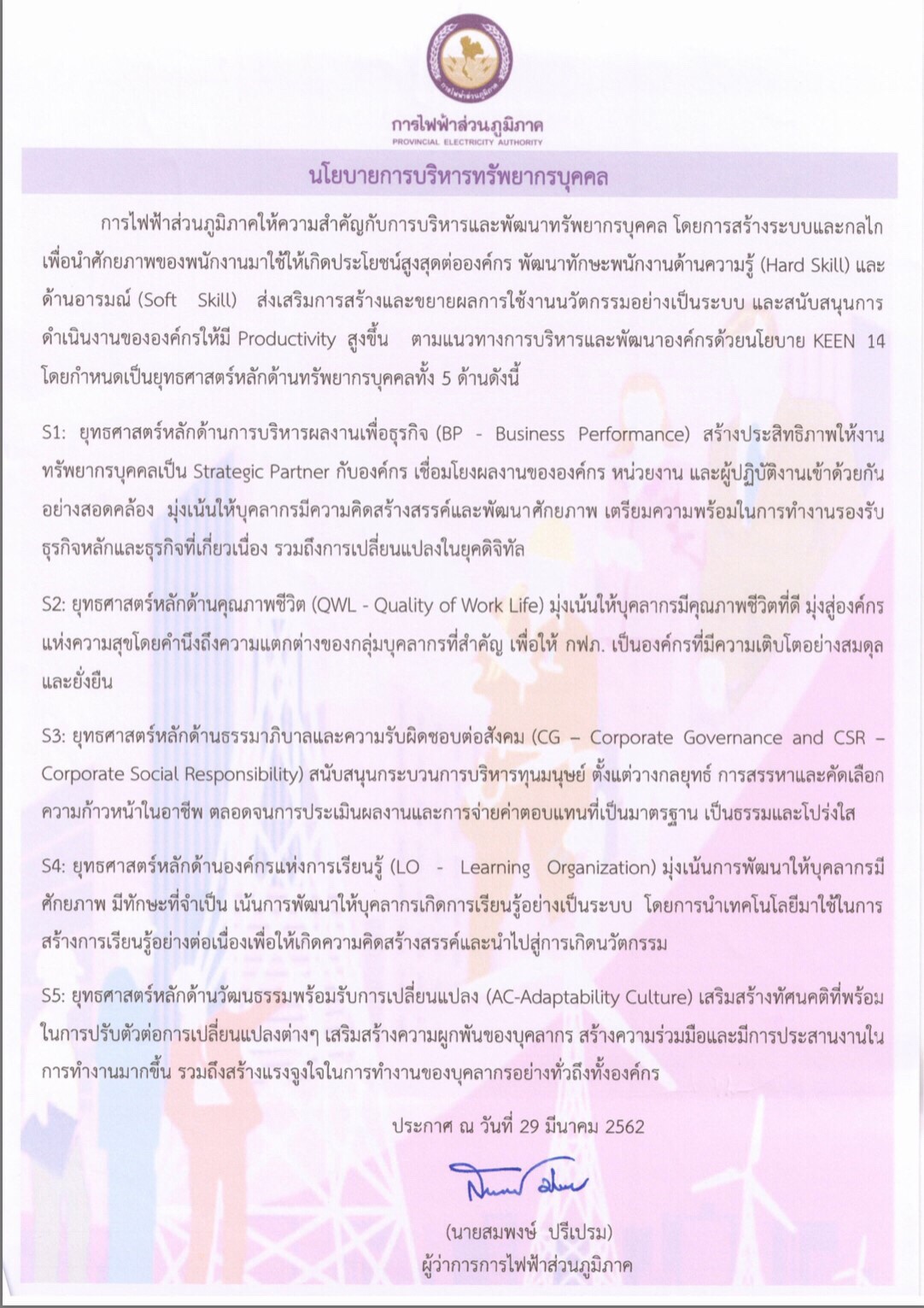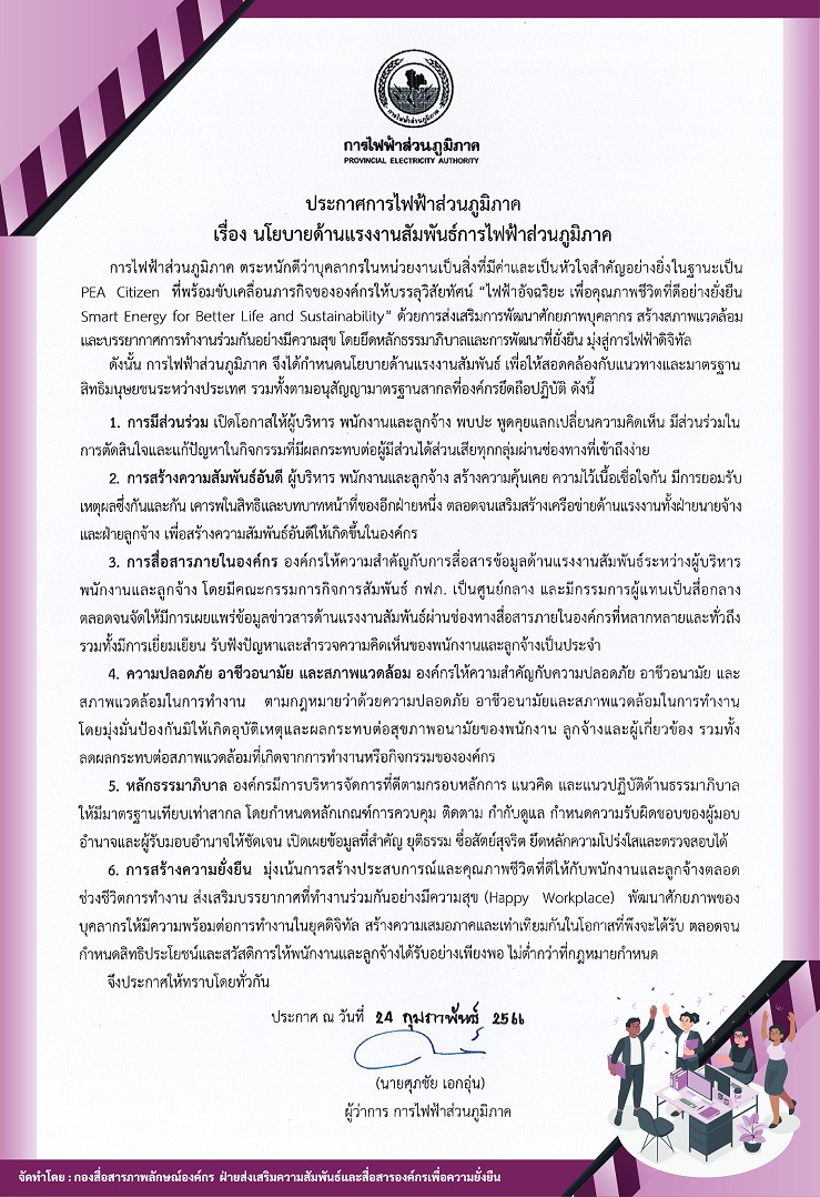 นโยบายด้านแรงงานสัมพันธ์การไฟฟ้าส่วนภูมิภาค