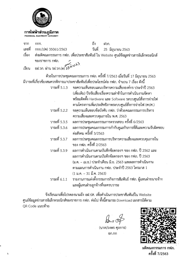 ระเบียบการไฟฟ้าส่วนภูมิภาค เกี่ยวกับข้อมูลส่วนบุคคล พ.ศ.2563