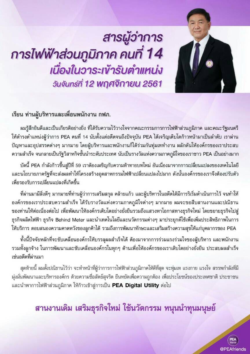 วิสัยทัศน์ ผู้ว่าการการไฟฟ้าส่วนภูมิภาค คนที่ 14