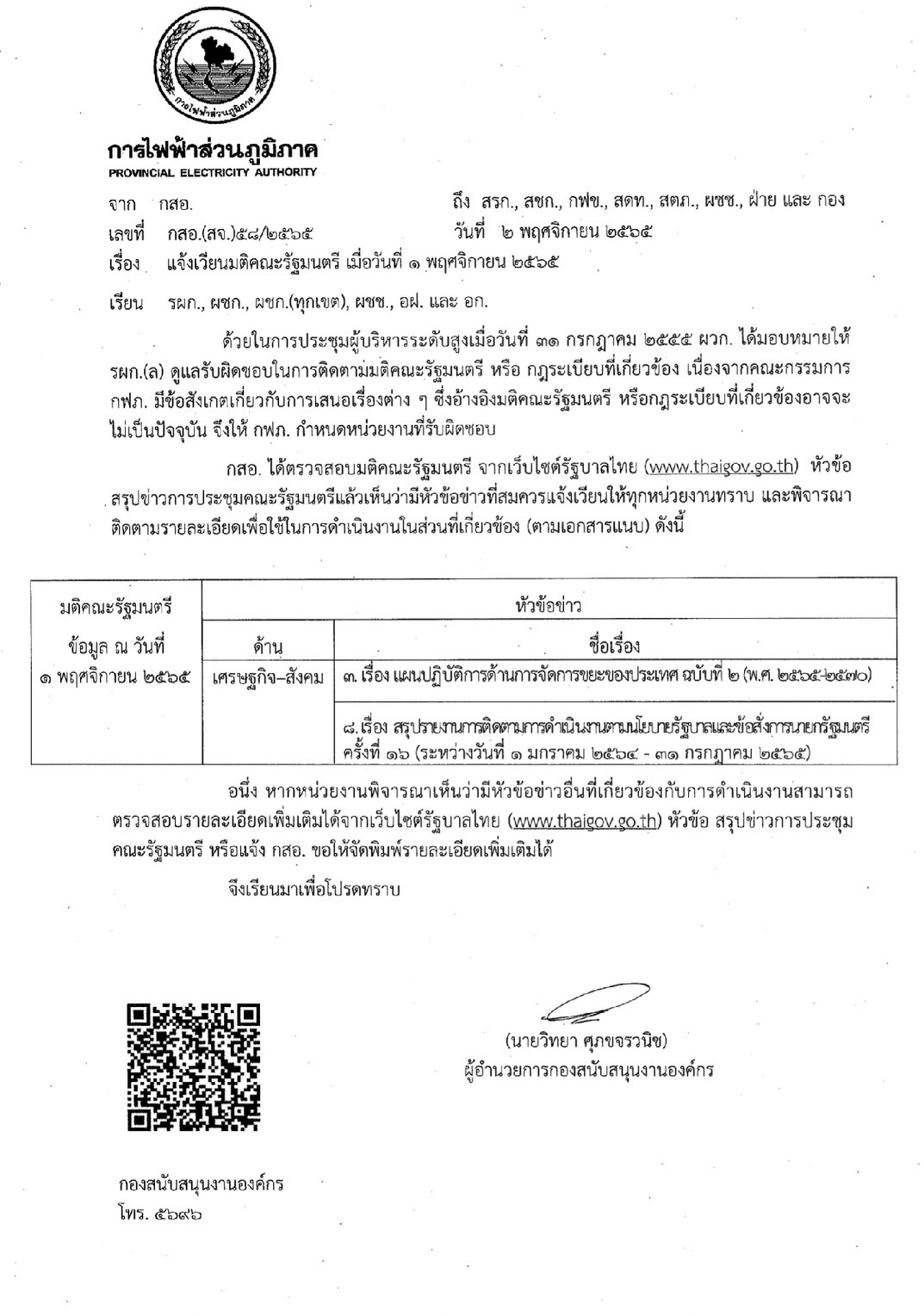 นโยบายผู้ว่าการการไฟฟ้าส่วนภูมิภาค คนที่ 14