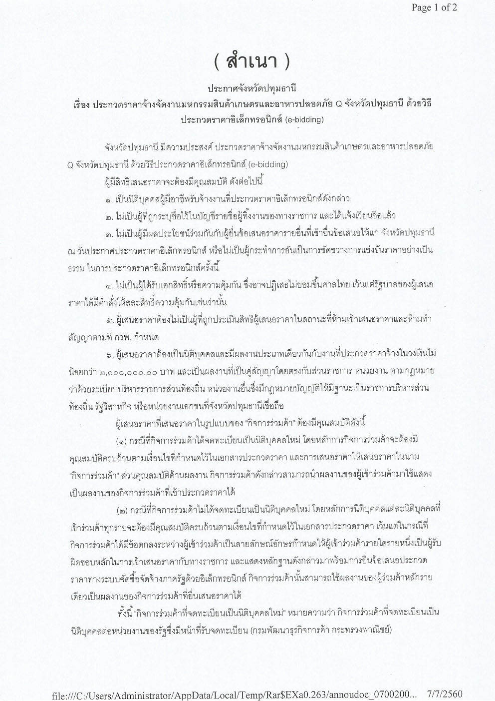 ประกาศจังหวัดปทุมธานี เรื่อง ประกวดราคาจ้างจัดงานมหกรรมสินค้าเกษตรและอาหารปลอดภัย Q จังหวัดปทุมธานี ด้วยวิธีประกวดราคาอิเล็กทรอนิกส์ (e-bidding) วันที่ 7 กรกฎาคม พ.ศ. 2560 ... อ่านต่อ |
