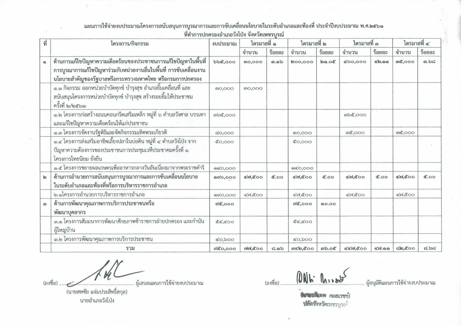 | 1 | แผนการใช้จ่ายงบประมาณโครงการสนับสนุนการบูรณาการและการขับเคลื่อนนโยบายในระดับอำเภอและท้องที่ ประจำปีงบประมาณ พ.ศ.2561 | 2 | 1 |
