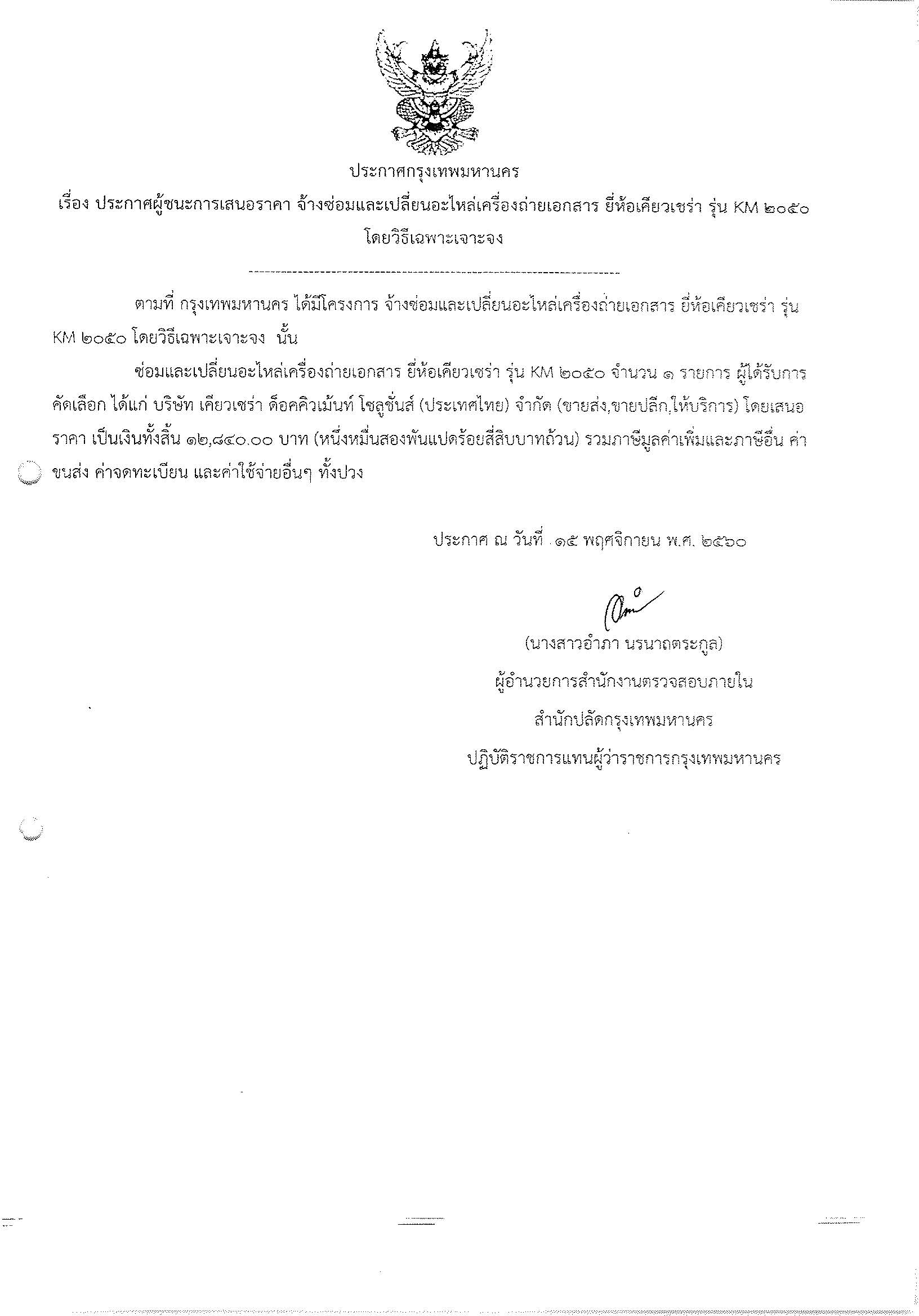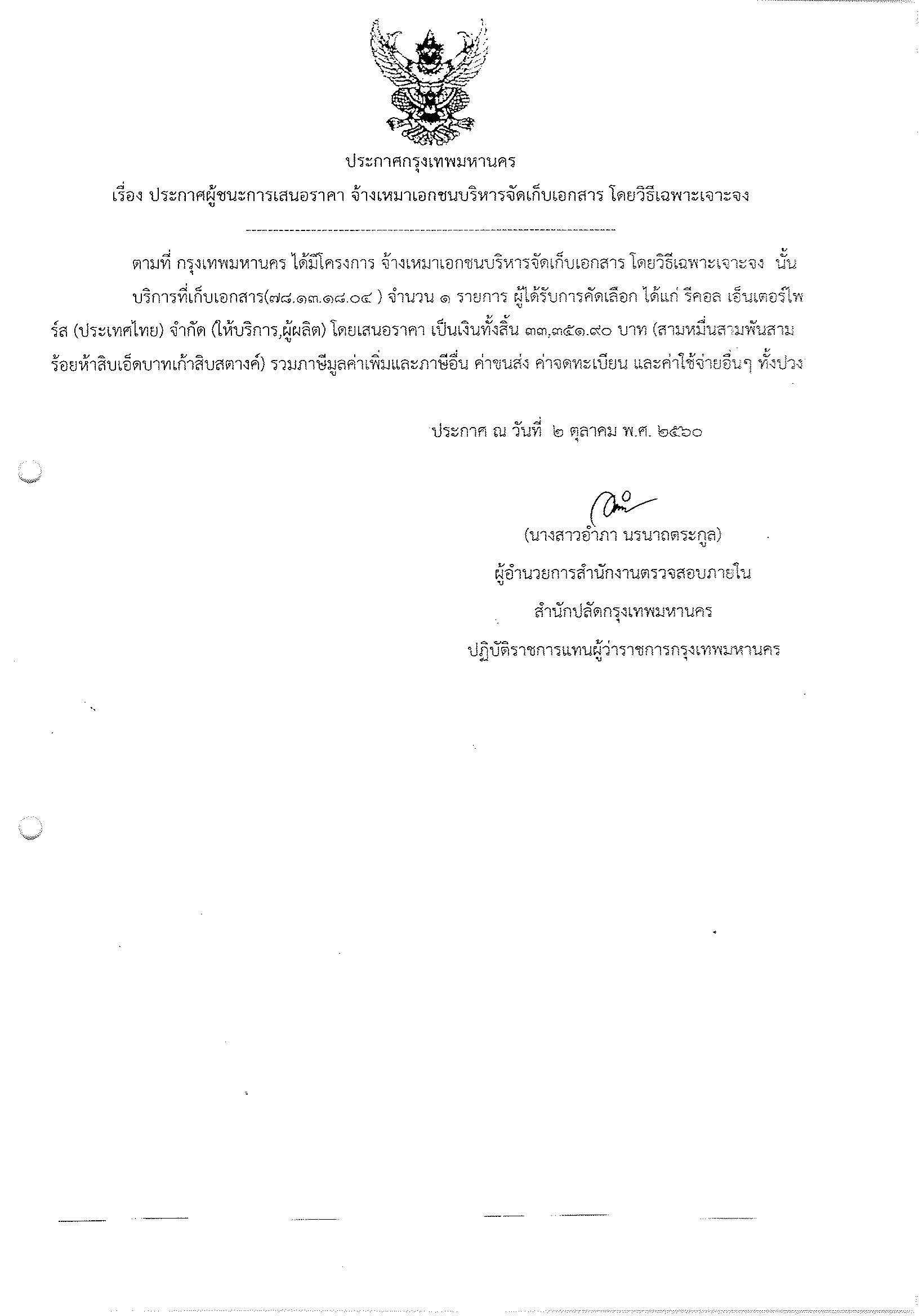 17 | รายงานผลเปิดซองเสนอราคางานจ้างเหมาปรับปรุงห้องรองปลัดกรุงเทพมหานคร จำนวน 2 ห้อง | 1 | 1 |