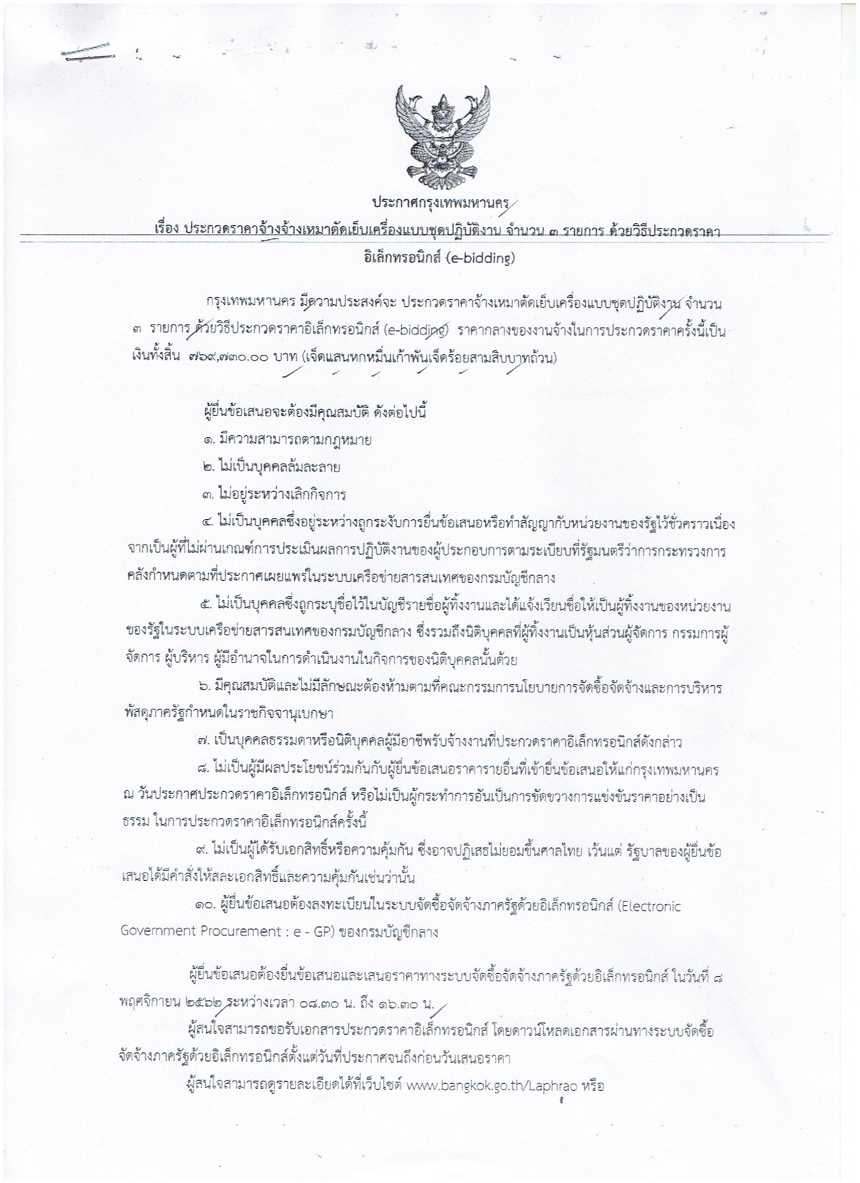 ประกวดราคาจ้างจ้างเหมาตัดเย็บเครื่องแบบชุดปฏิบัติงาน จำนวน 3 รายการ ด้วยวิธีประกวดราคาอิเล็กทรอนิกส์ (15/11/2562)