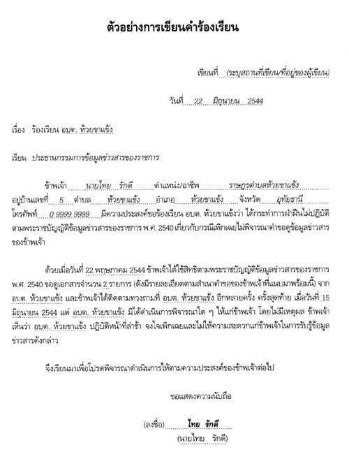 3. ข้อความที่ควรระบุในหนังสือร้องเรียน