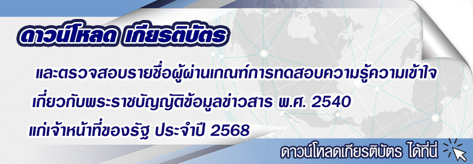 ดาวน์โหลดเกียรติบัตร ผู้ผ่านเกณฑ์การทดสอบ พ.ร.บ.ข้อมูลข่าวสารฯ แก่เจ้าหน้าที่ของรัฐ ประจำปีงบประมำณ พ.ศ. 2568
