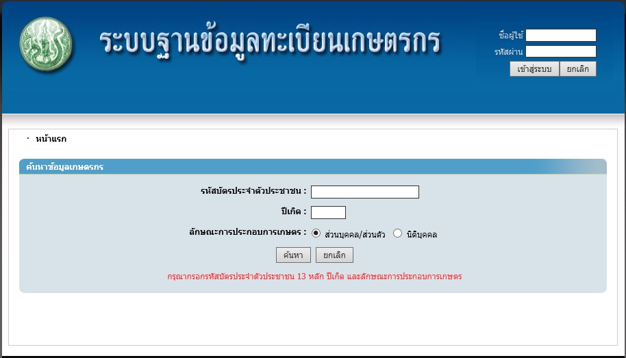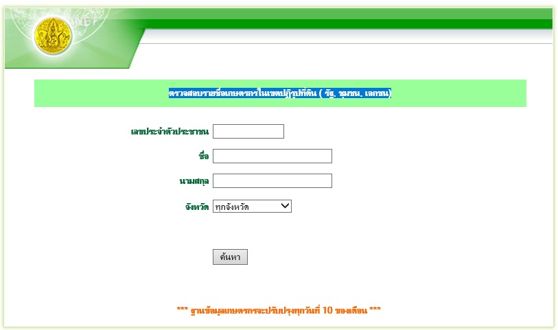 ตรวจสอบรายชื่อเกษตรกรในเขตปฏิรูปที่ดิน ( รัฐ, ชุมชน, เอกชน)